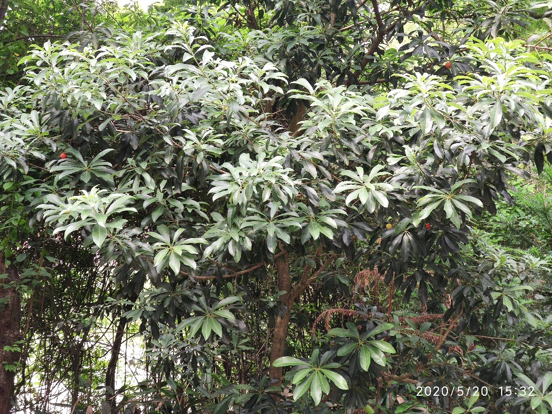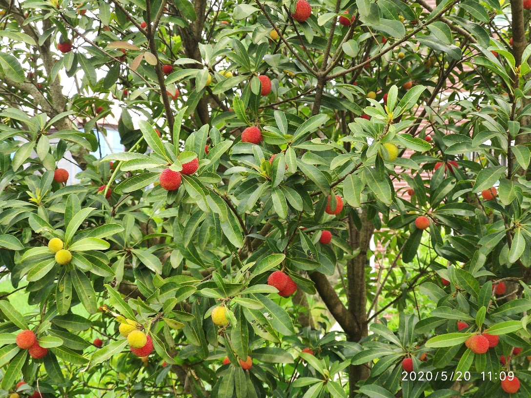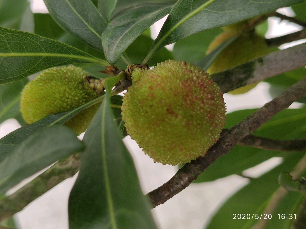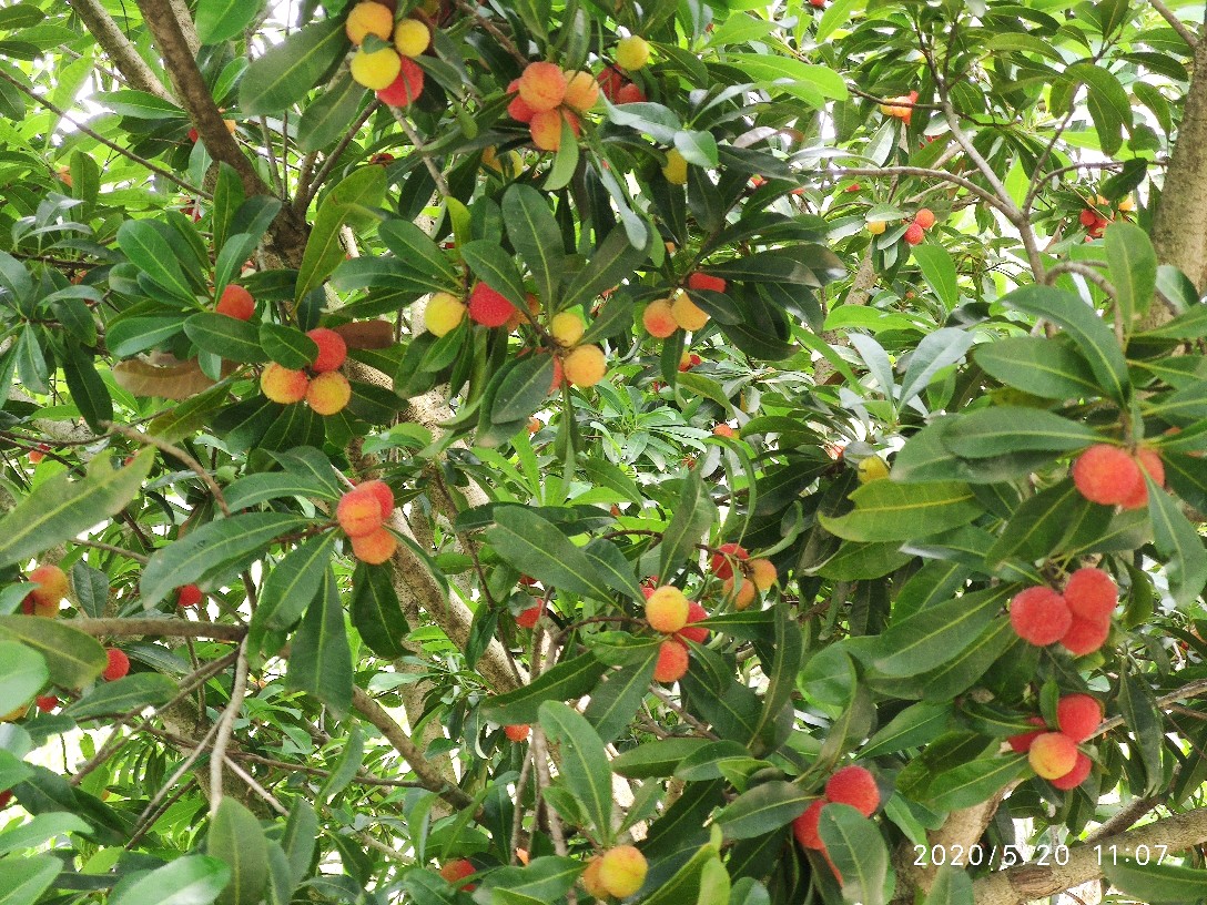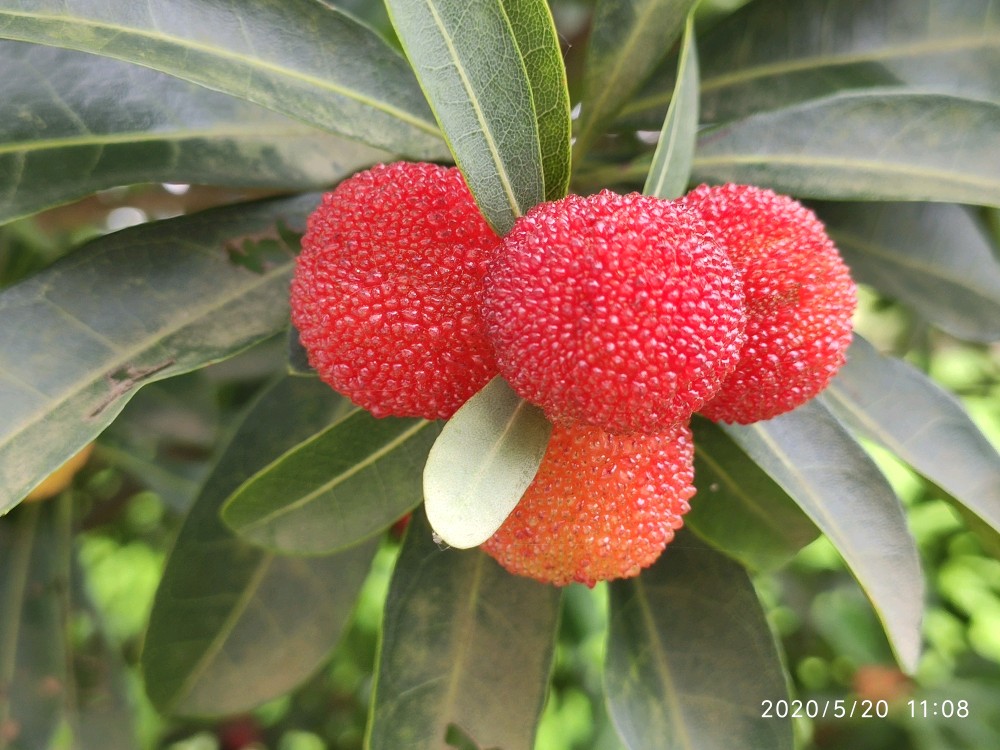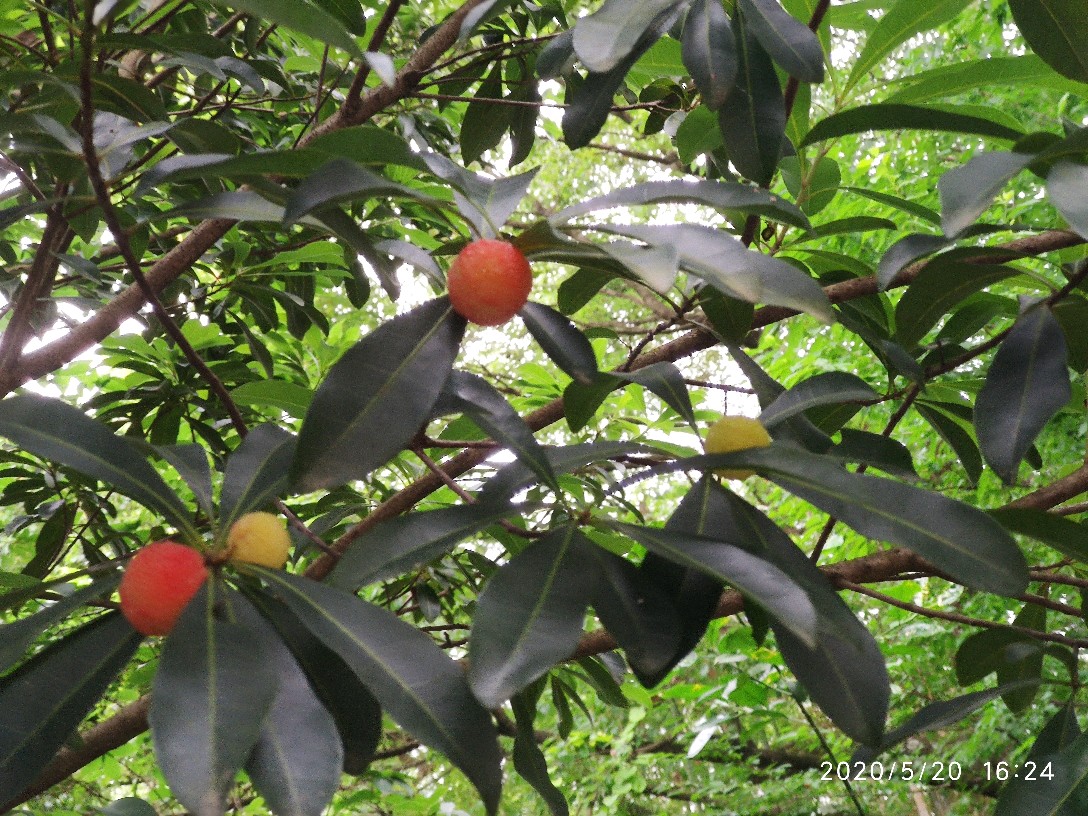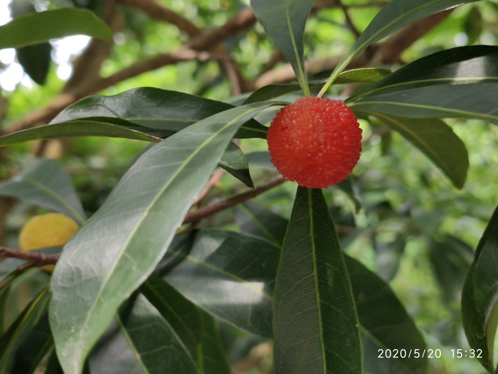 第一棵杨梅,果子大却稀疏。也开始微微泛红了,不过要等它红透,估计还得三五天