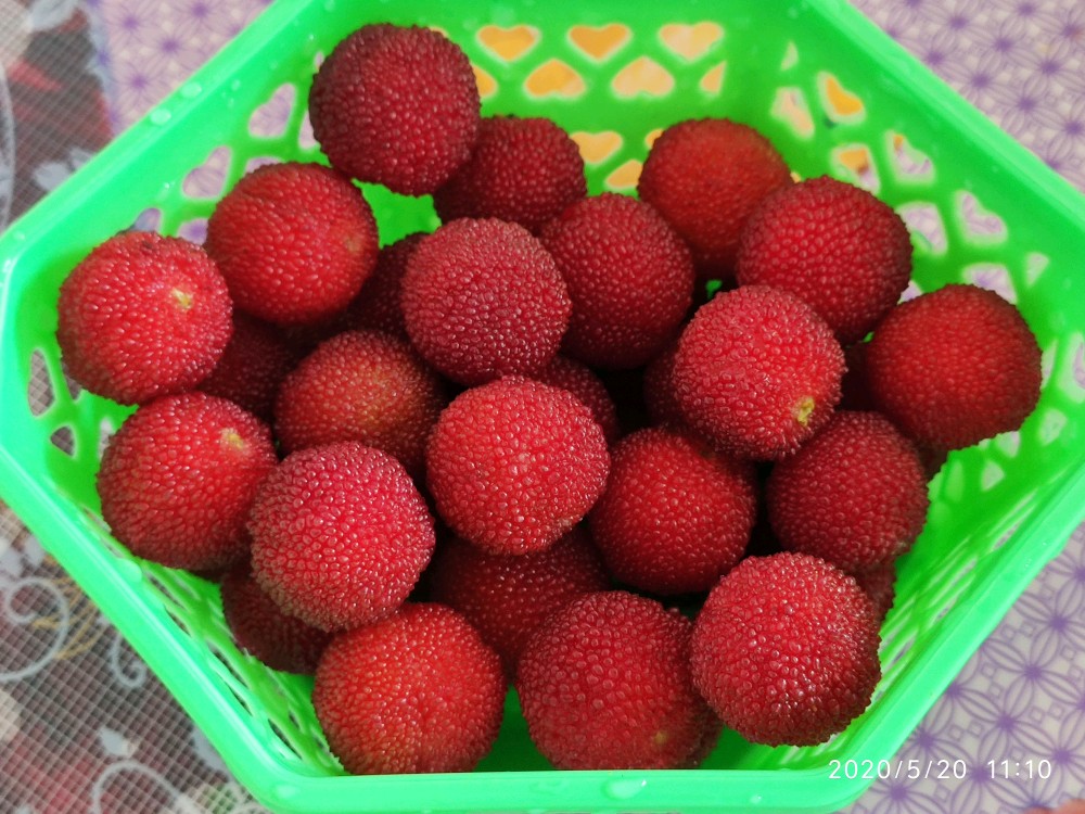 第二三棵杨梅便是最近能吃的杨梅了,果子稍小却结了不少。可每天也就那绿色的小筐一兜,多了吃不了也不敢吃
