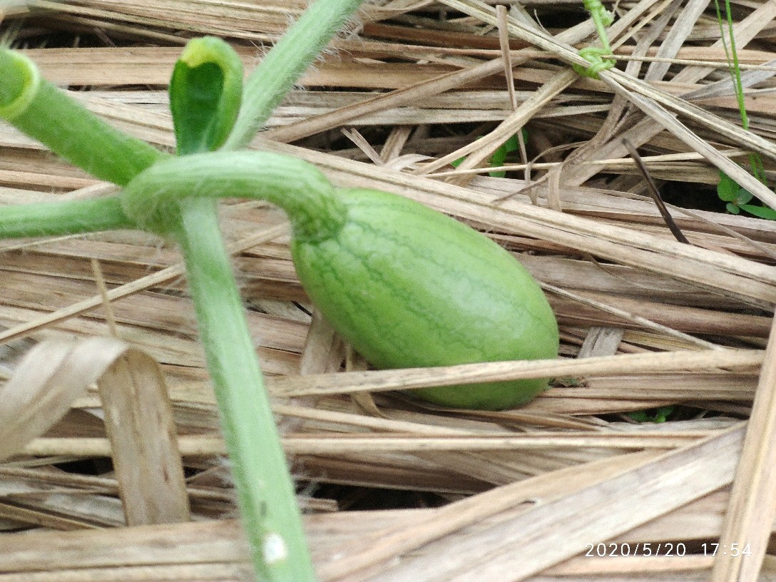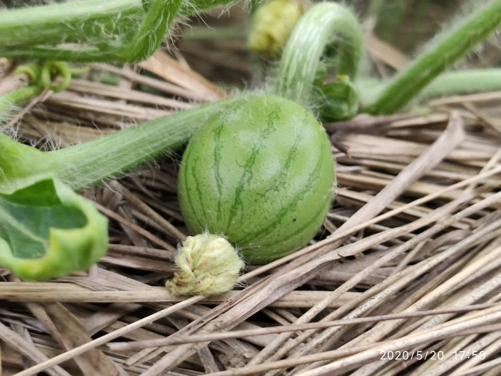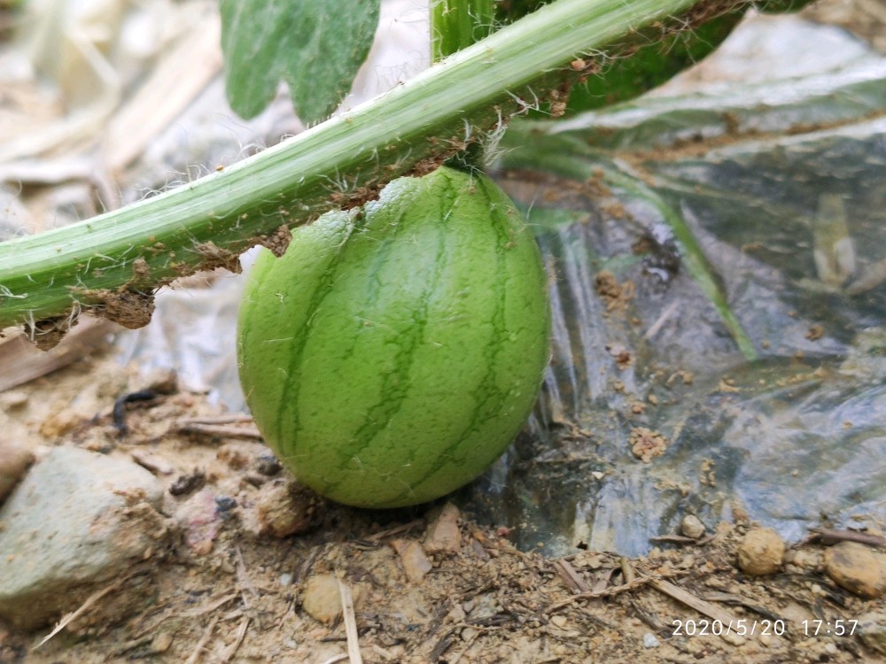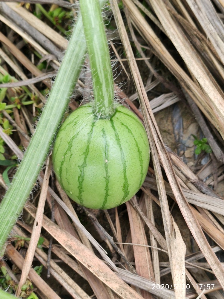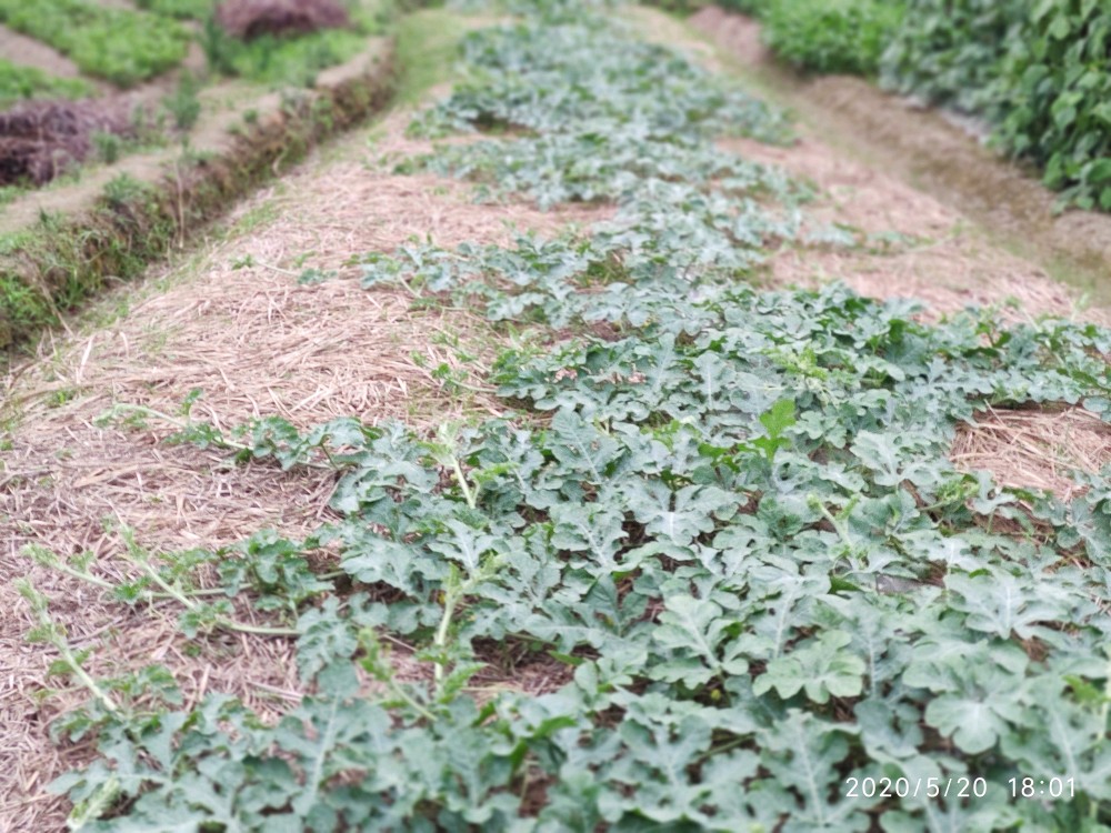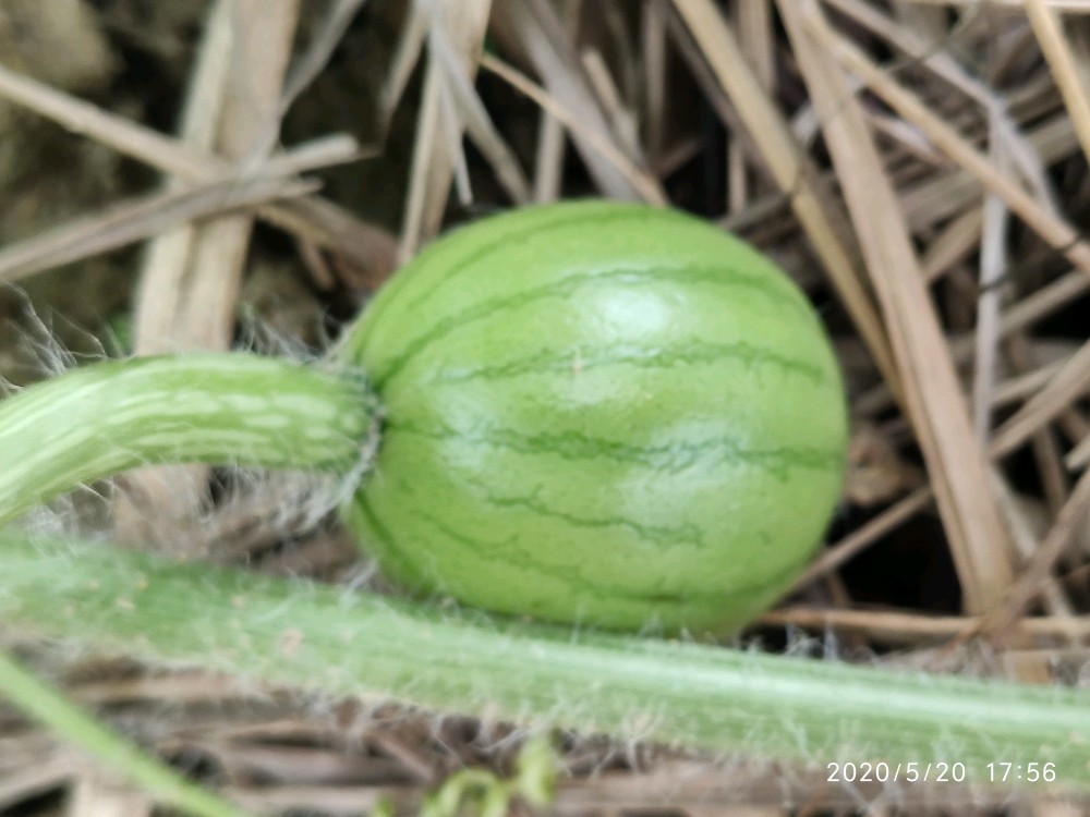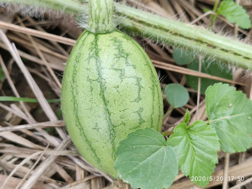 今年的西瓜种的比较艰难,一开始我买了种子播了下去,出芽率什么的长的其实都很好。可惜一场降温,全军覆没了。第二次播下去后快出芽的时候又恰赶上那几天高温,又都给闷死了,这次没第一次残忍倒是给我们留了几株。接着第三次买……然后瓜便是就是早早晚晚大大小小参次不齐,有的都爬蔓了有些才刚展开一两片叶子。