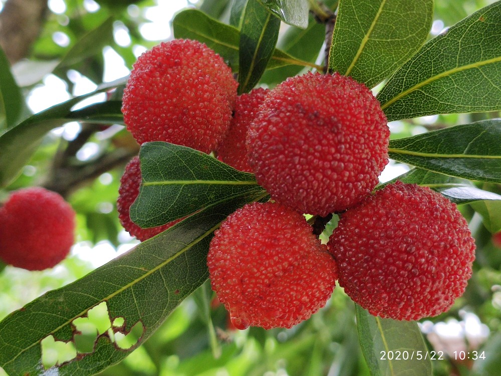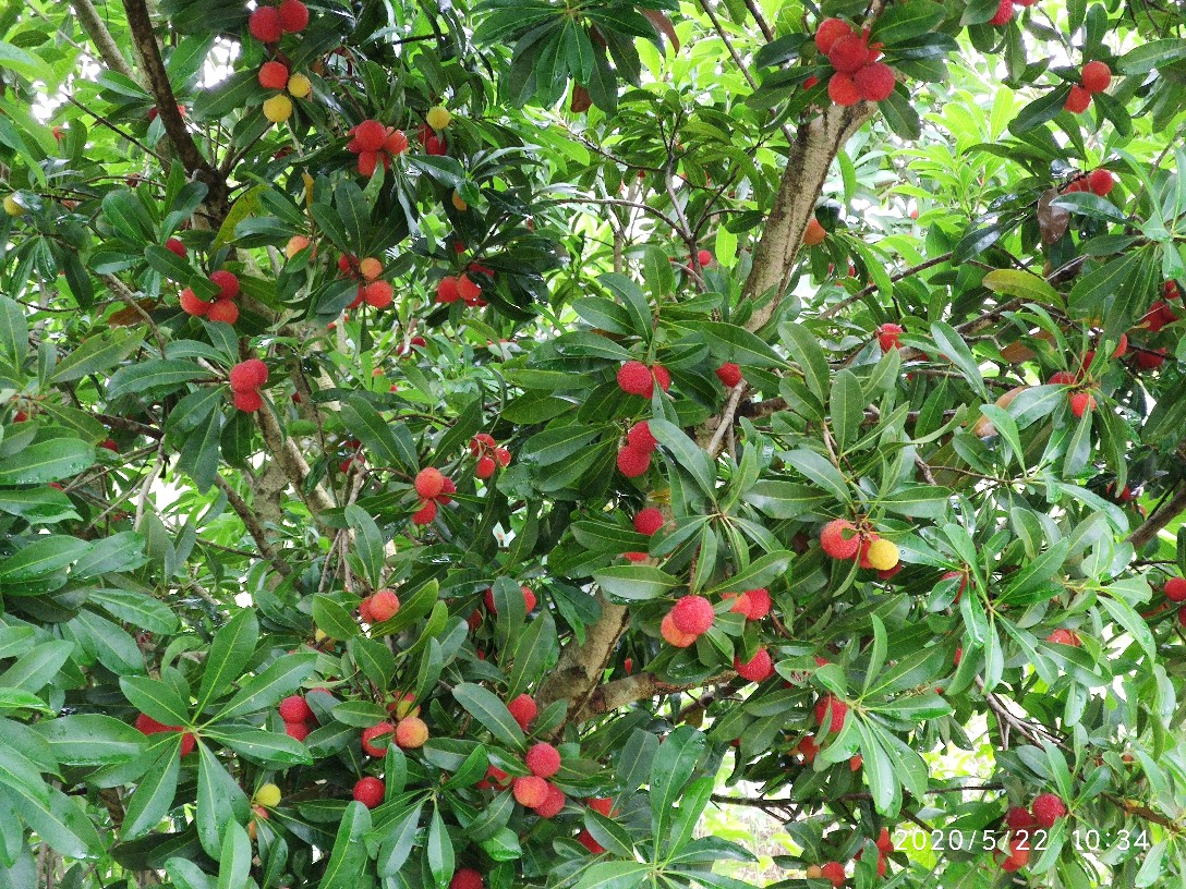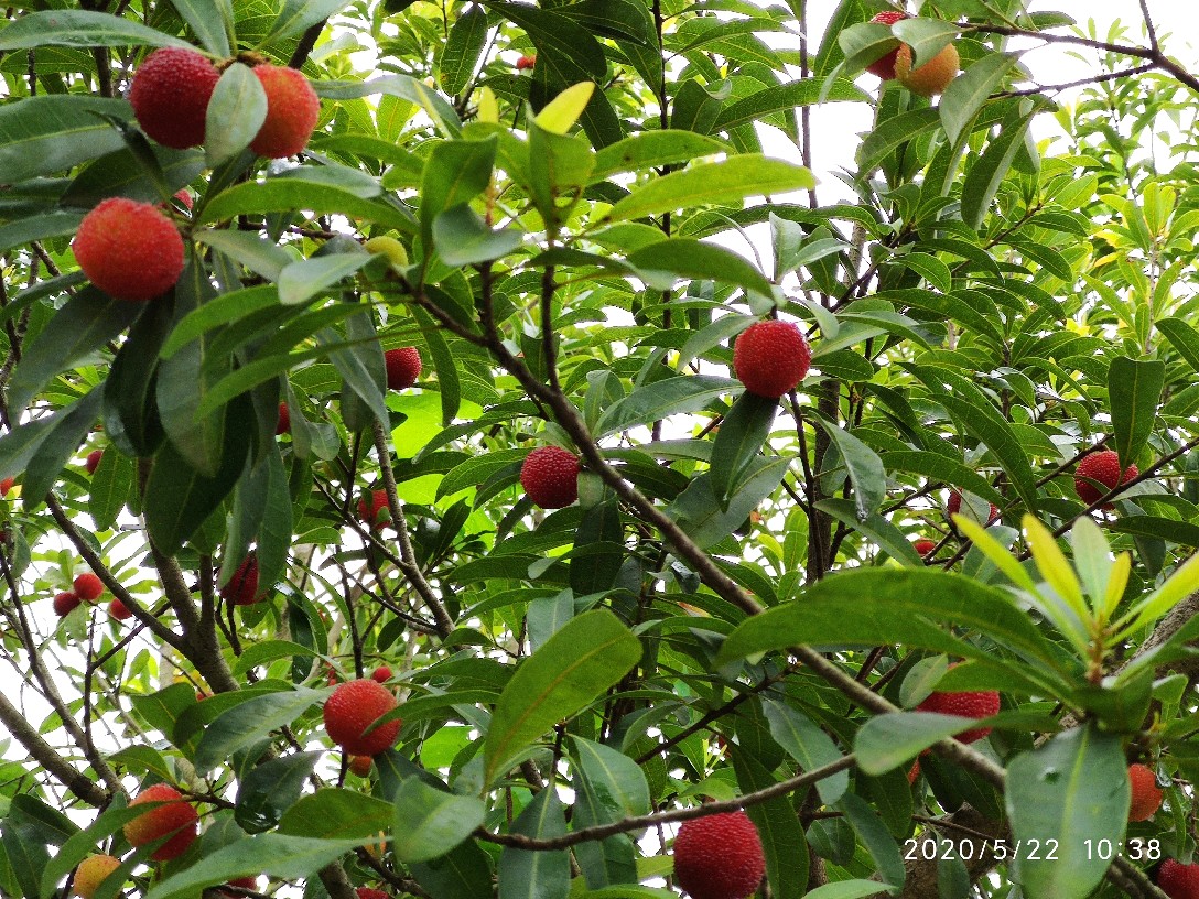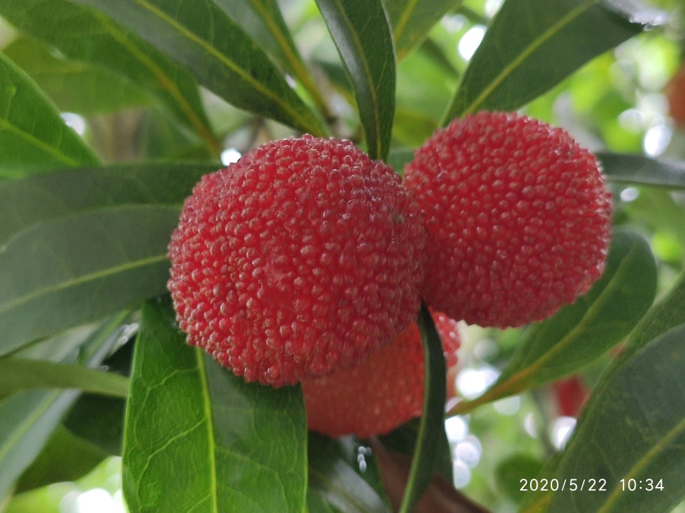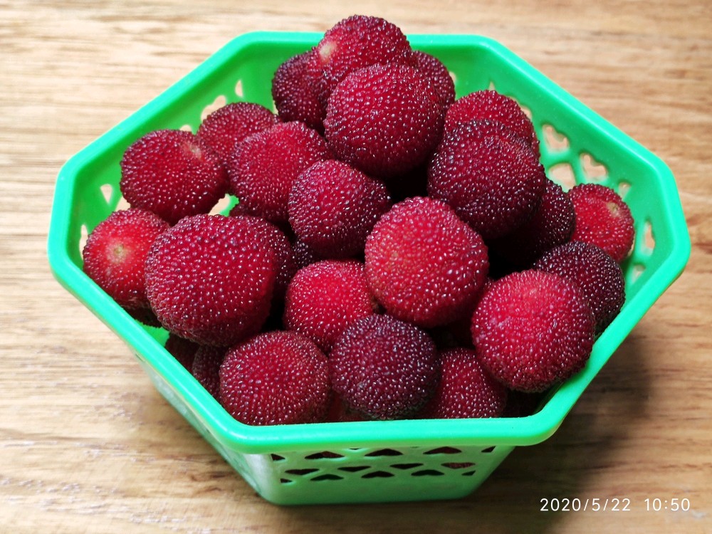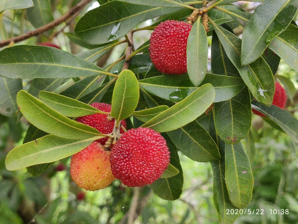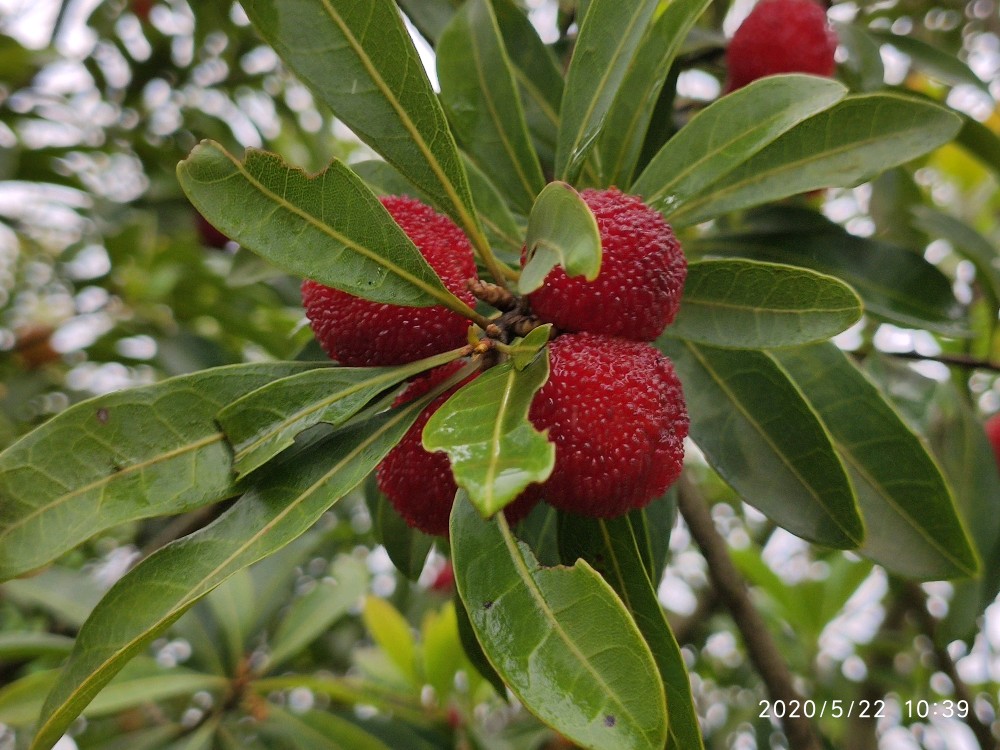 本没打算拍杨梅,可突然想到今天都周五了。再不拍,等下午那几个神兽回来洗劫一空后可是想拍都没得拍了。两棵杨梅还是分别给个镜头吧,这应该是它们的巅峰时刻了,值得拥有一张单人照
