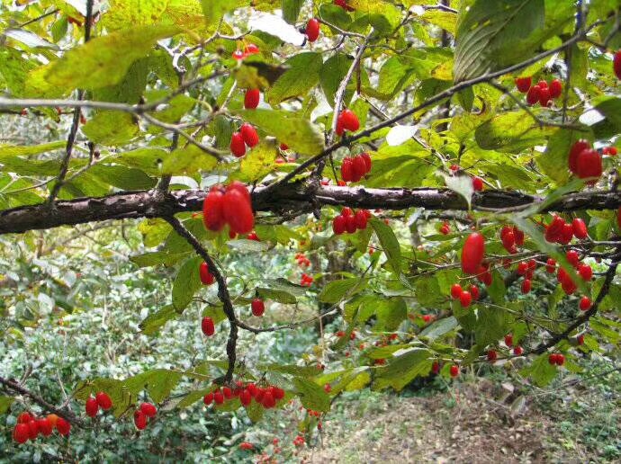 山茱萸,味酸涩,气平、微温,无毒。入肾、肝二经。温肝经之血,补肾脏之精,暖腰膝而助阳气,经候可调,小便能缩,通水窍,去三虫,强力延年,轻身明目。