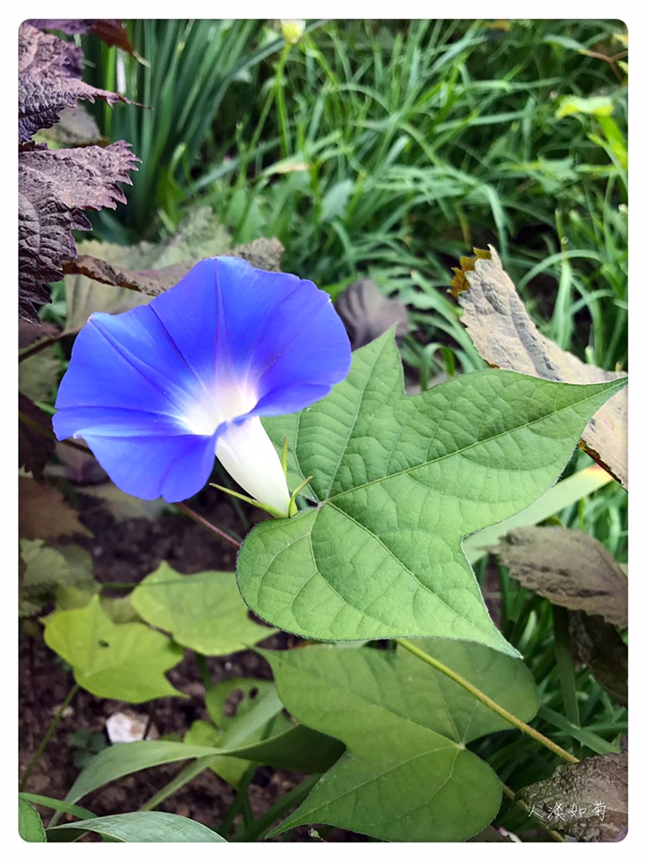 在矢车菊退场之后,院前的那一小片地儿就成了牵牛花的天下,开着圆叶牵牛和裂叶牵牛,大有铺天盖地之势,每天晨起都见它们灿烂地开着。