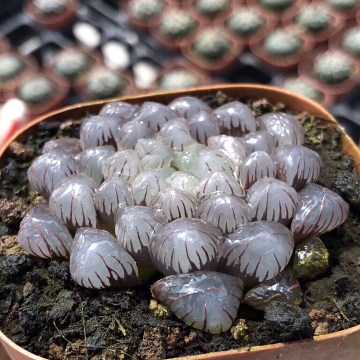 是紫系的透窗冰灯玉露,具体是啥冰灯忘了......在花鸟买的算是转卖了。买了5颗分享4棵,每棵25元。价格已经很亲民了。大小在4.5-6.5cm左右,切勿自行想象大小。团购4份,卖完即止,参团的私我,咸鱼也有卖的。