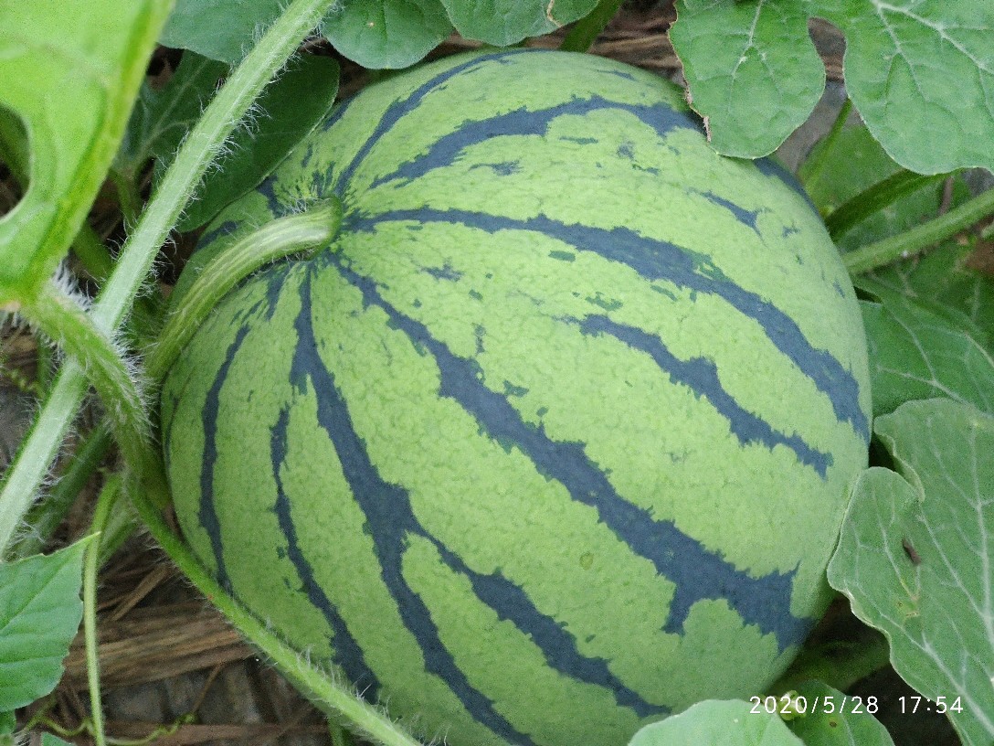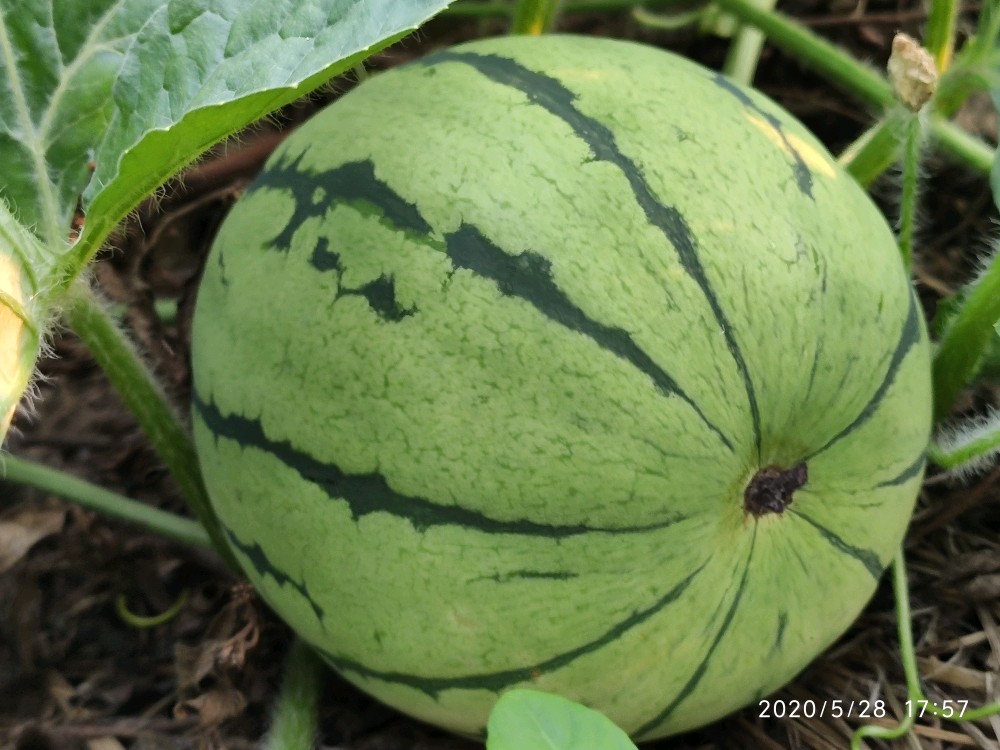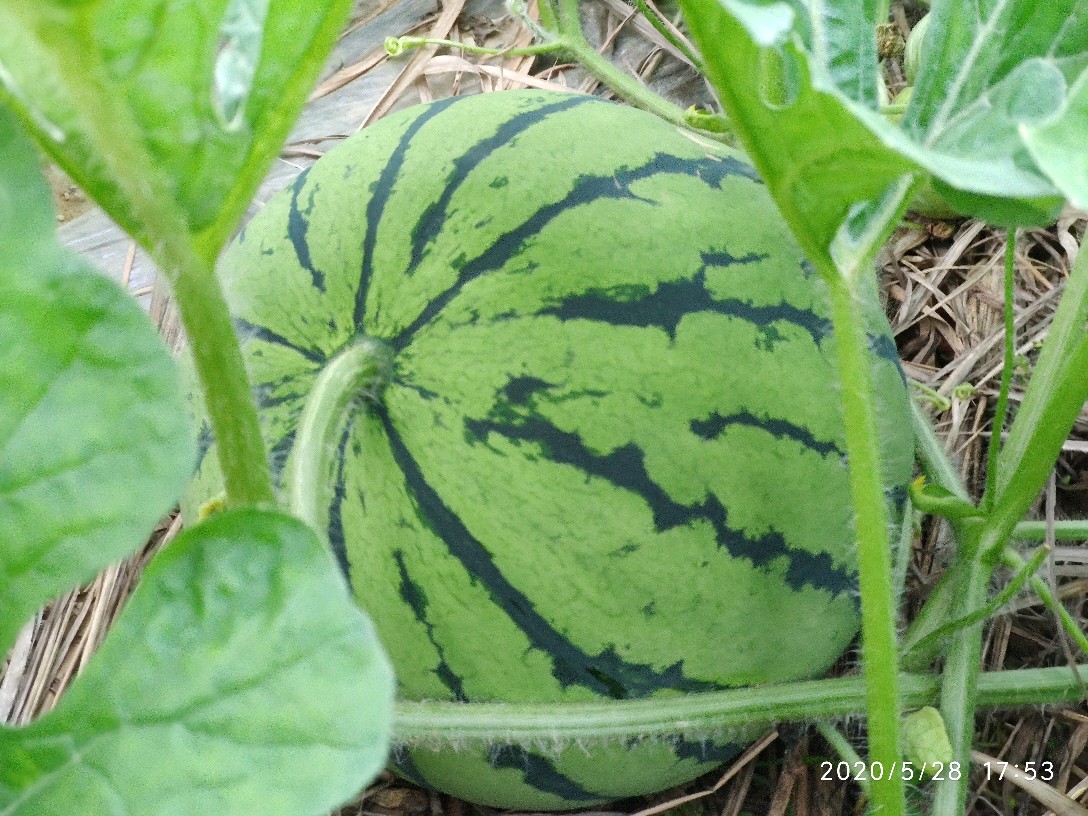 几天不见爷爷的小西瓜已长成了大西瓜,估摸着一个该有五六斤了吧
