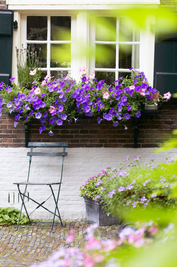 将这样满满的矮牵牛挂在向阳的窗外,整个院子都被点亮。