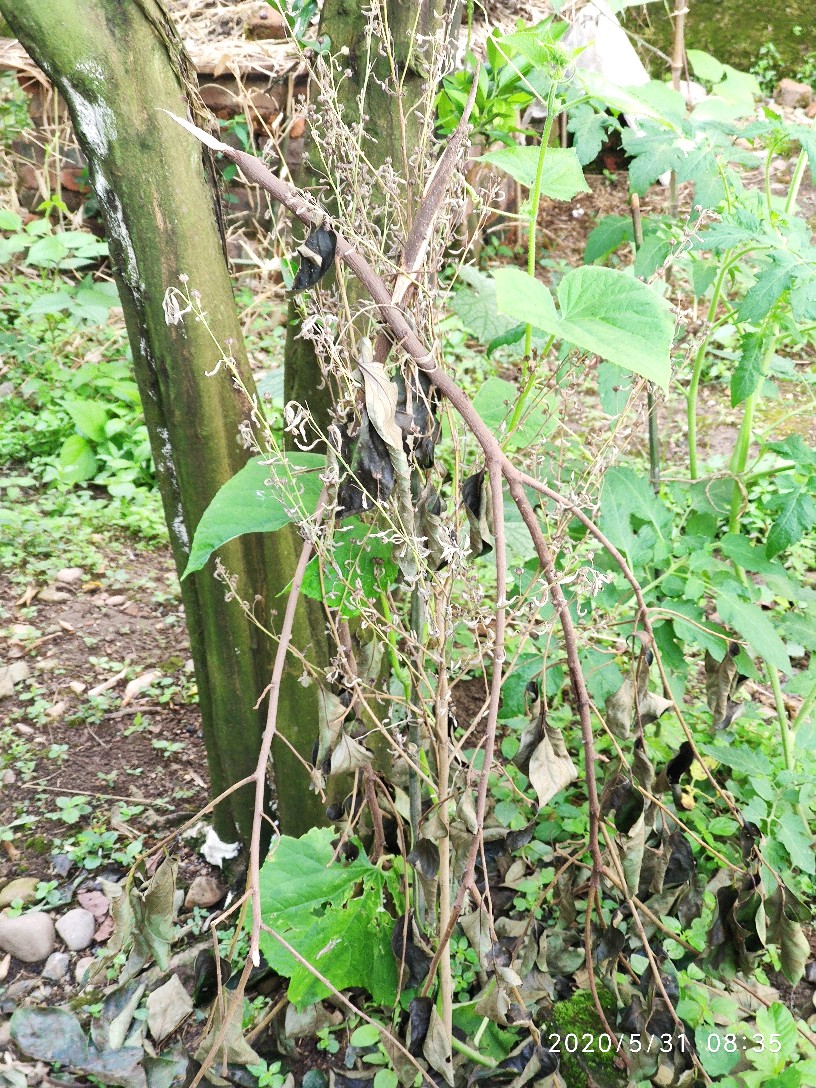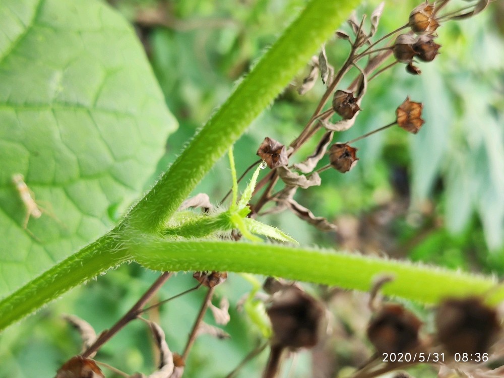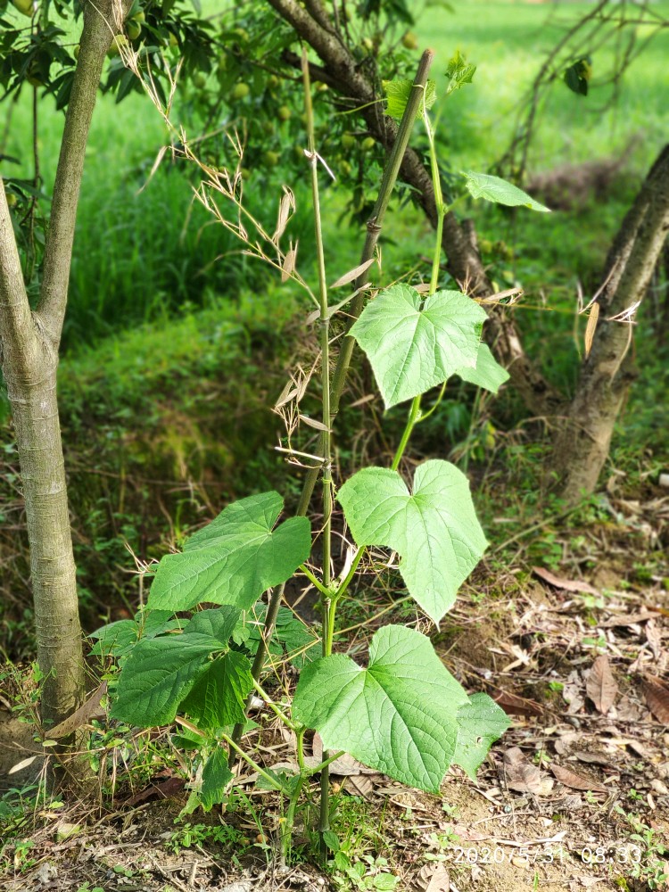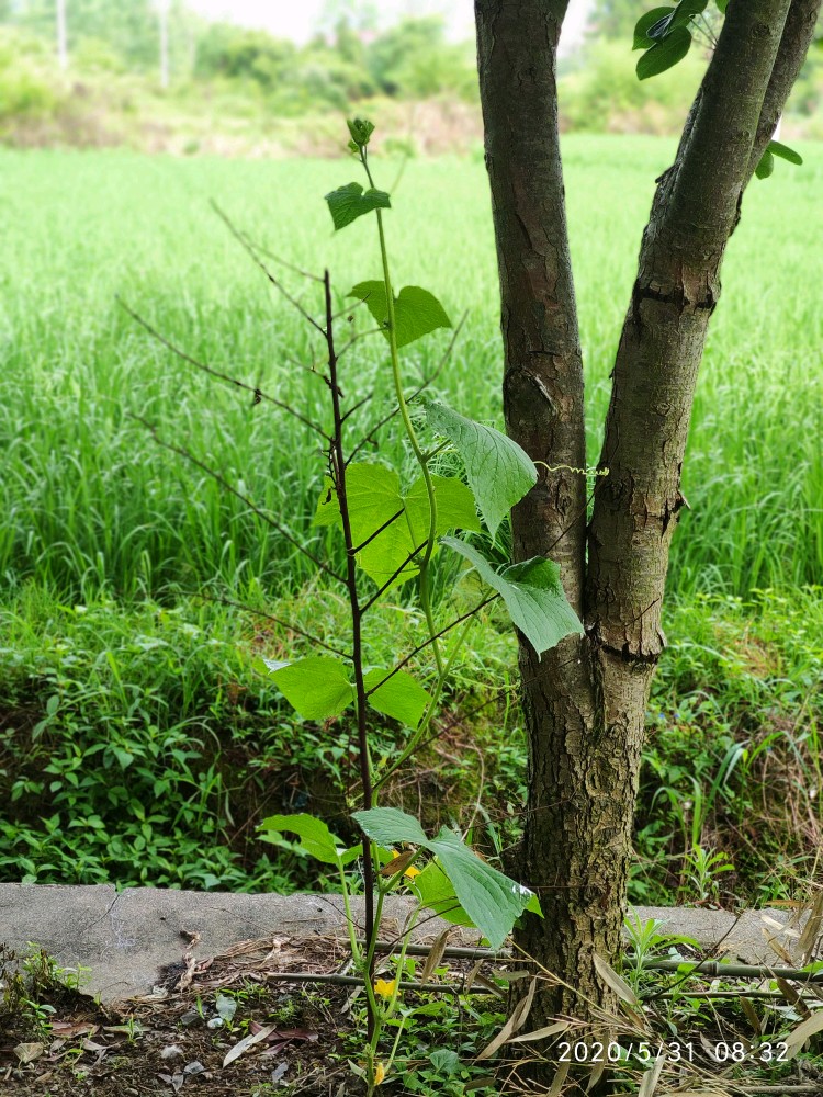 一开始是种了四棵小黄瓜的,其中一棵相对远点过去的途中也尽是杂草,从来也不曾去看过了。所以也就相当于种了三棵。