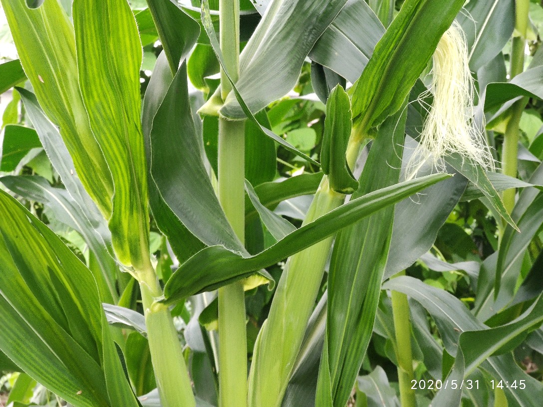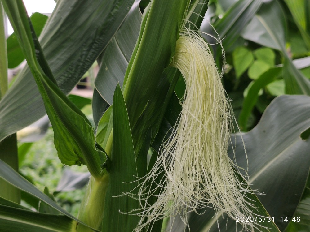 今天看到有两个玉米已长出了玉米须,也开出了花这种期待感就更真实了一点。