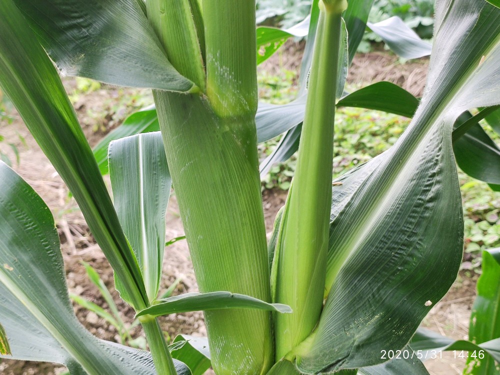玉米长势颇好,虽说现在就仅有前面几棵长出了小玉米,可还是满满的盼头啊。