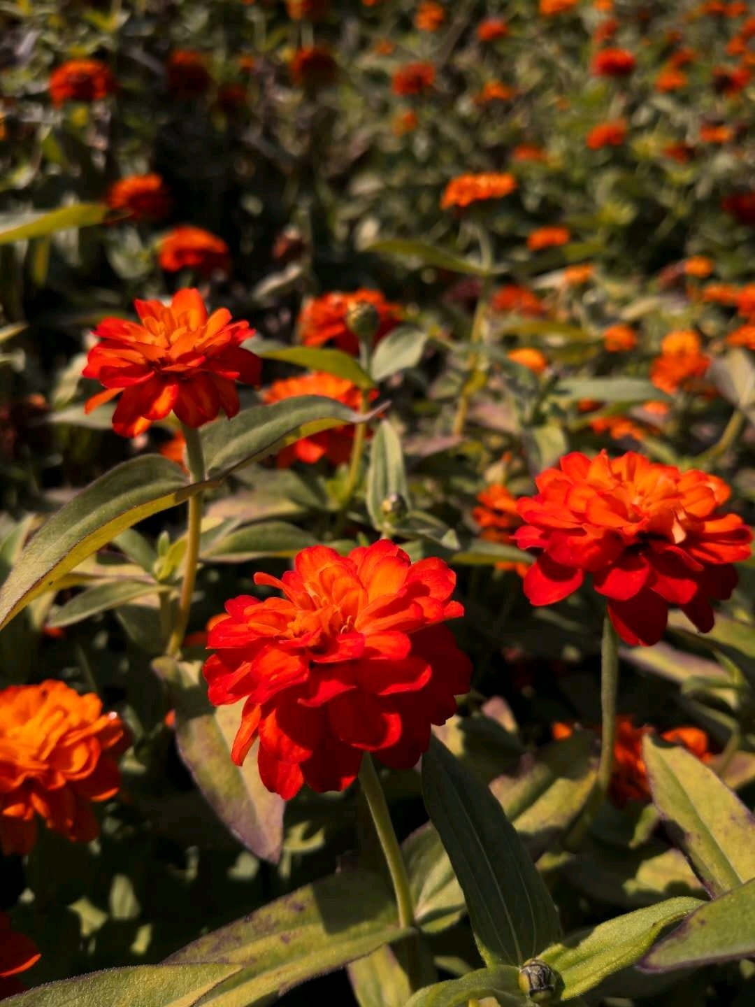 步登高学名也好听,叫百日菊,由此可见它的的花期起码三个月,也是相当长了。这种花有单瓣的,也有重瓣的,还有花色杂糅的,长在一起,靠阵势取胜。