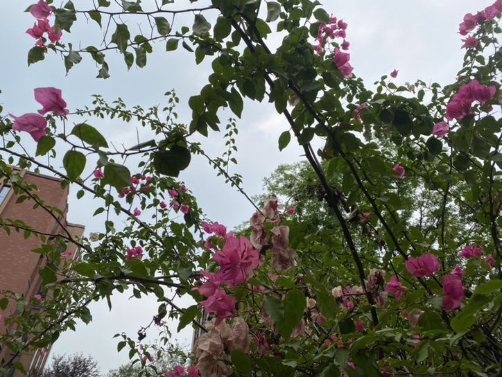 叶子花属木质藤本状灌木,茎有弯刺,并密生绒毛。单叶互生,卵形全缘,被厚绒毛,顶端圆钝。花很细小,黄绿色,三朵聚生于三片红苞中,外围的红苞片大而美丽,有鲜红色、橙黄色、紫红色、乳白色等,被误认为是花瓣,因其形状似叶,故称其为叶子花。花期可从11月起至第二年6月。冬春之际,姹紫嫣红的苞片展现,给人以奔放、热烈的感受,因此又得名贺春红。叶子花原产南美洲的巴西,大约在十九世纪三十年代才传到欧洲栽培,叶子花喜温暖湿润、阳光充足的环境,不耐寒,中国除南方地区可露地栽培越冬,其它地区都需盆栽和温室栽培。土壤以排水良好的砂质壤土最为适宜。