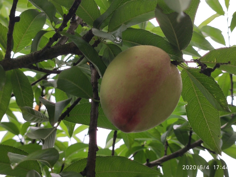 桃子熟的比我想象中的快,昨天就已经摘了三个吃了。今天继续三个。