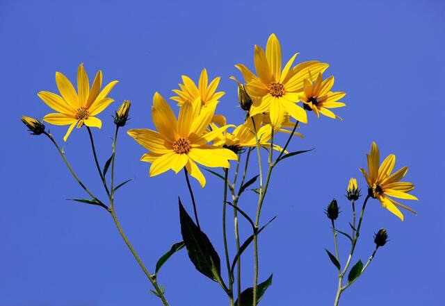 菊芋,学名:Helianthus tuberosus (L. 1753),又名洋姜、鬼子姜,是一种多年宿根性草本植物。高1-3米,有块状的地下茎及纤维状根。茎直立,有分枝,被白色短糙毛或刚毛。叶通常对生,有叶柄,但上部叶互生;下部叶卵圆形或卵状椭圆形。头状花序较大,少数或多数,单生于枝端,有1-2个线状披针形的苞叶,直立,舌状花通常12-20个,舌片黄色,开展,长椭圆形,管状花花冠黄色,长6毫米。瘦果小,楔形,上端有2-4个有毛的锥状扁芒。花期8-9月。