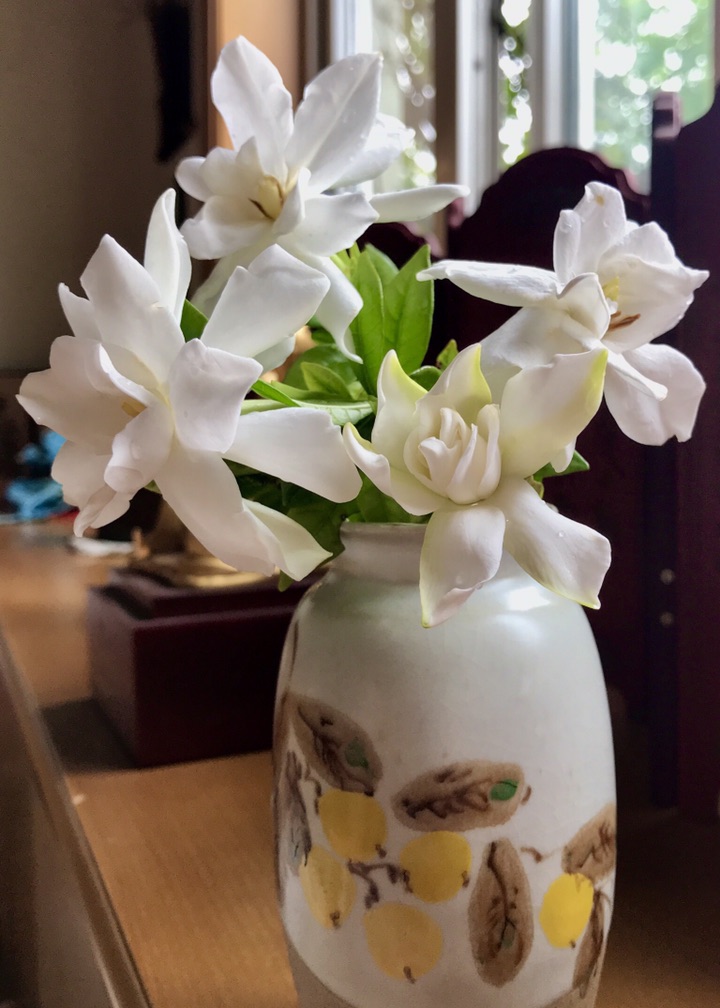 一场大雨后,剪几朵栀子花,插在花瓶里欣赏,淡淡幽香,沁人心脾……