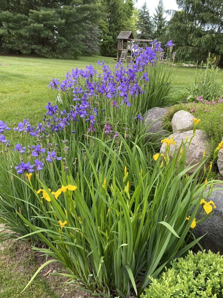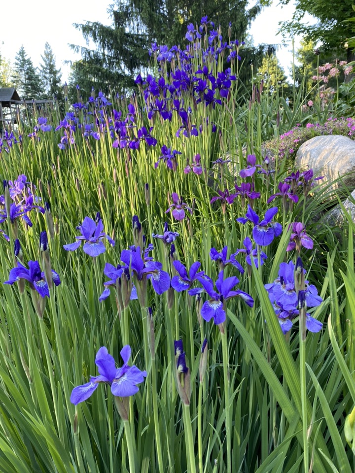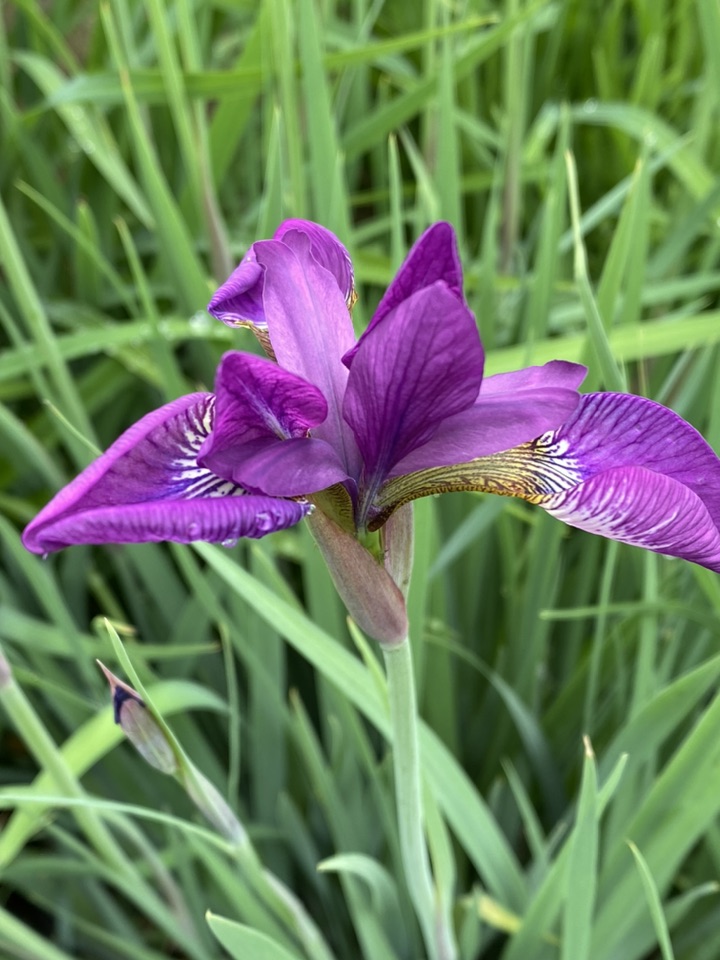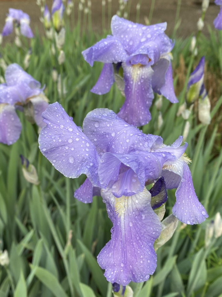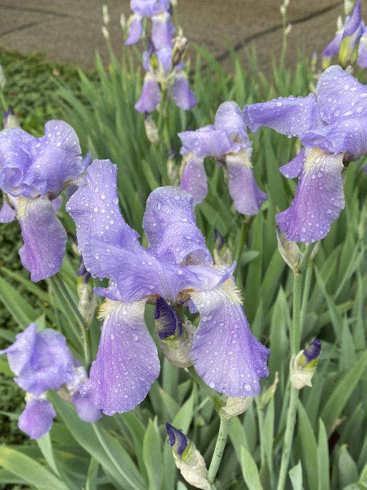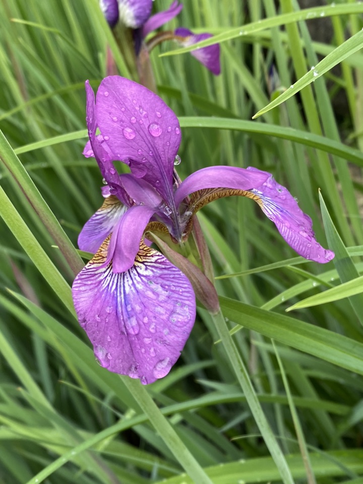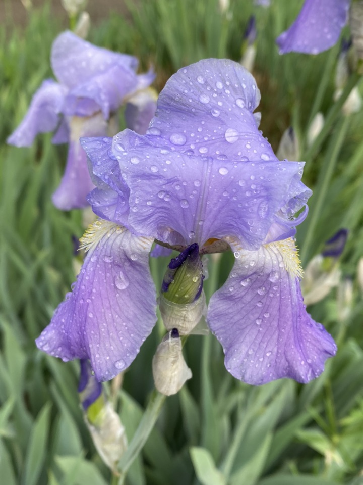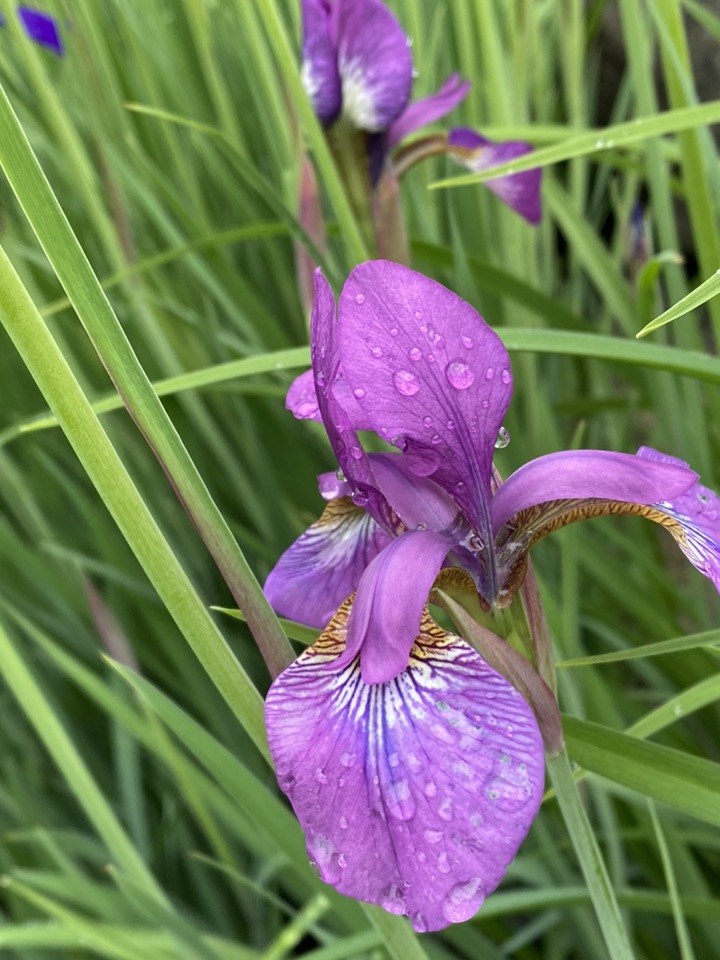 顺便也发一下邻居家的鸢尾,淡淡的蓝色,雨后含珠带泪的,也是很美的!只是品种不一样,花朵大、叶片色浅,看上去不是那么精神、是那种有点儿柔弱的美😜
