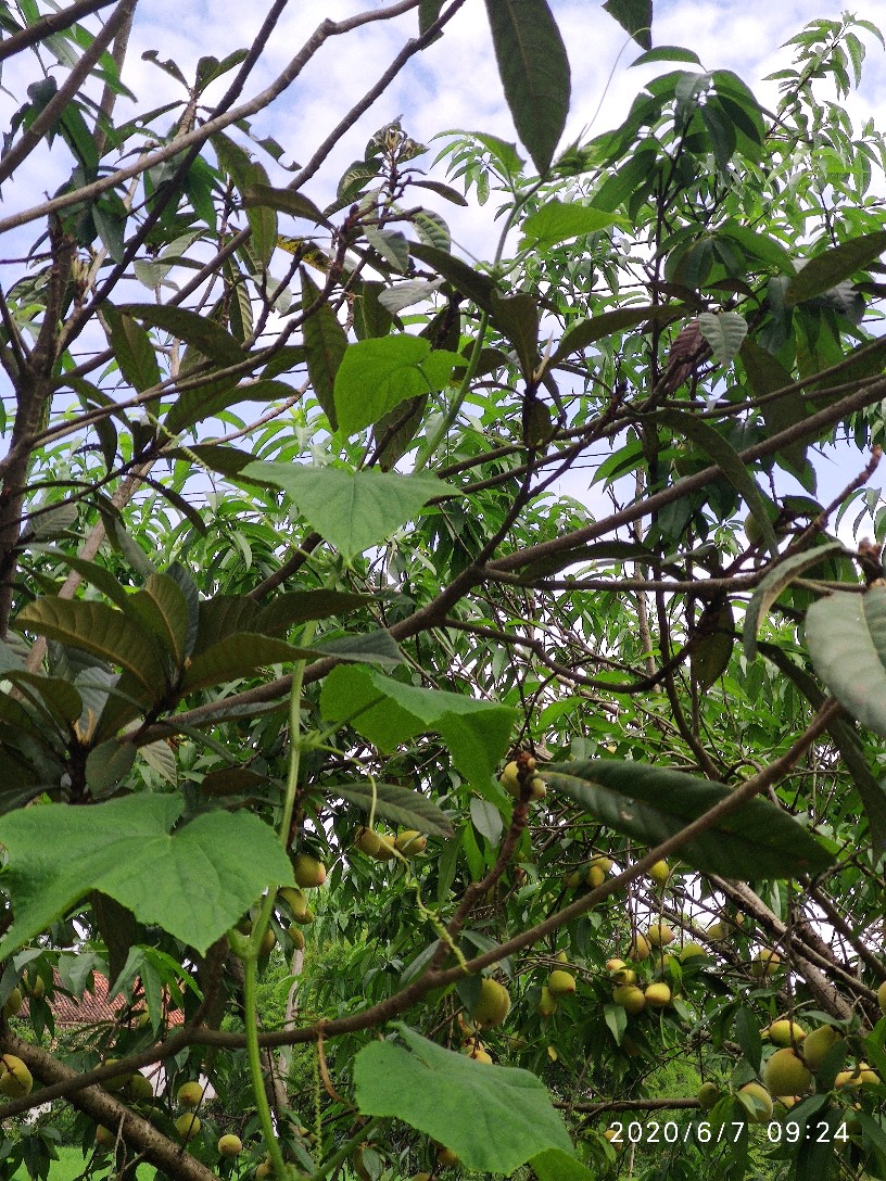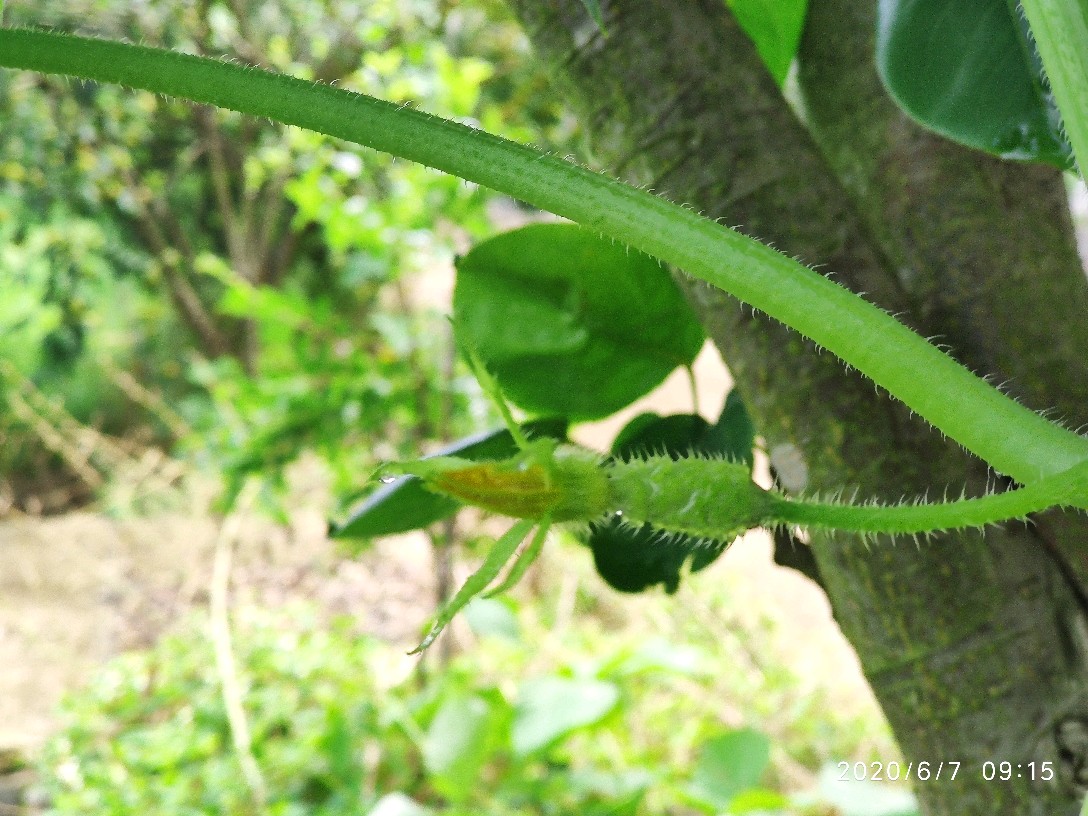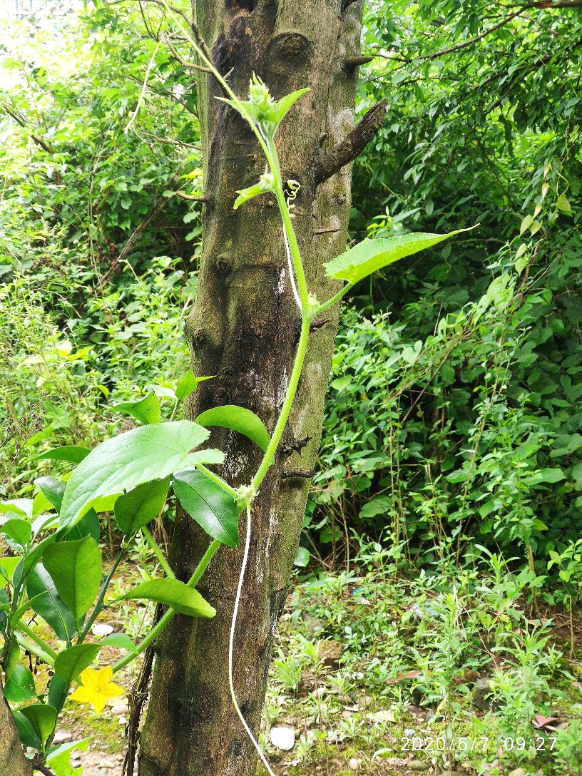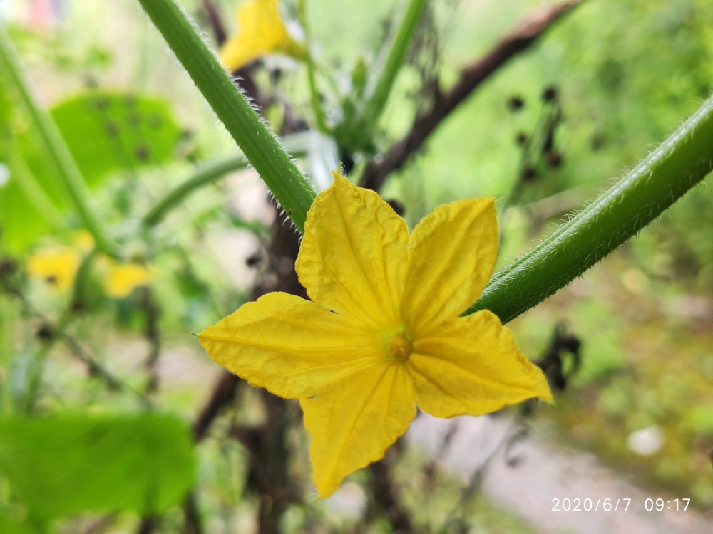 枇杷树下的这棵节节开花,也爬上了高高的枇杷树。虽说开了这么多花,可没有一朵是带有小黄瓜的雌花