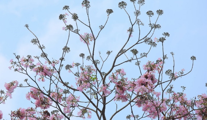 是紫葳科、风铃木属落叶乔木。树干厚重,树皮灰白色,其表面有皱纹,通常有支柱根,树枝分布均匀。叶子为暗绿色,长约30厘米。花朵呈喇叭状或漏斗状,浅紫色到深紫色或紫红色,常在叶腋处形成顶生的大花簇。它的果实是深褐色的圆柱形结荚,成熟后会裂开,露出其内带翼的种子。紫花风铃木原产巴西、巴拉圭、危地马拉、阿根廷、特立尼达和多马哥等中南美洲的国家和地区。性喜光,稍耐荫,生长适温20-30℃,最低温度5℃。对土壤要求不