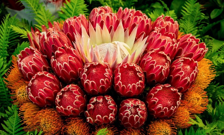 又名普蒂亚花,是南非共和国的国花。其花朵硕大、花形奇特、瑰丽多彩、高贵优雅,号称“花中之王”。久开不败的帝王花,被誉为全世界最富贵华丽的鲜花,代表着旺盛而顽强的生命力,并象征着胜利、圆满与吉祥。
