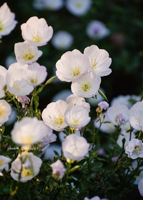 美丽月见草,别名:待霄草、粉晚樱草、粉花月见草,拉丁文名:Oenothera speciosa,英文名:evening primrose(晚樱草),是月见草的一种,柳叶菜科、月见草属多年生草本,具粗大主根(粗达1.5厘米);茎常丛生,因它在傍晚见月开花,且天亮即调谢,故名月见草,但美丽月见草白天也会开放,花朵如杯盏状,引来粉蝶翩翩飞舞,甚为美丽。丛生状种植,营造出别样的自然园林风情。