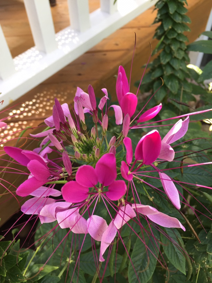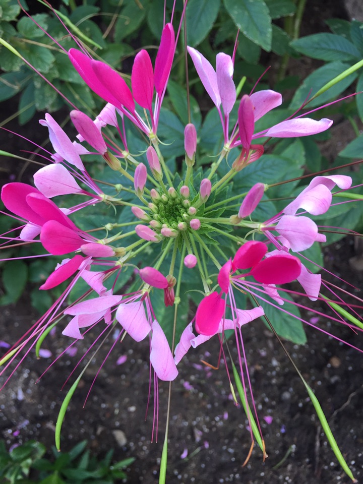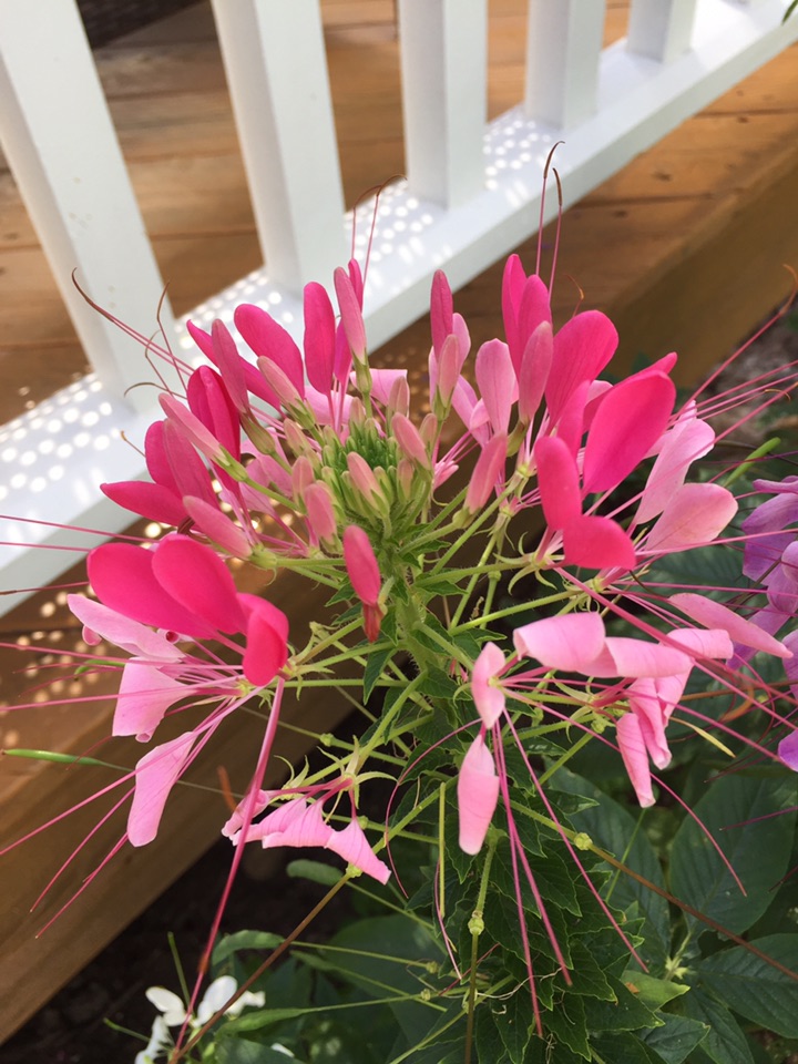 这一株是混色,粉、紫、白长在一株上,比较热闹;目前尚未看到蝴蝶"醉”于其中,倒是看到不少蜜蜂飞来飞去、流连忘返!