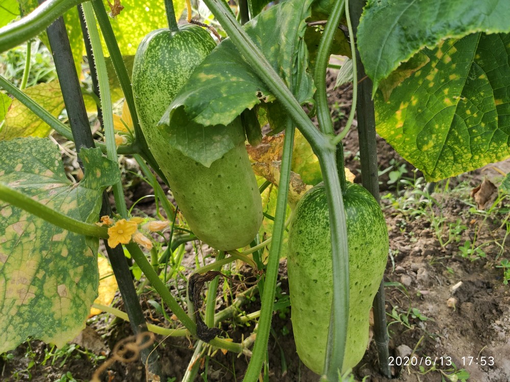 昨天吃了几个桃子和一个香瓜,肚子有点不舒服了,可还是没能抵挡住黄瓜的诱惑,摘回来便和老妈一块儿分享了一个。