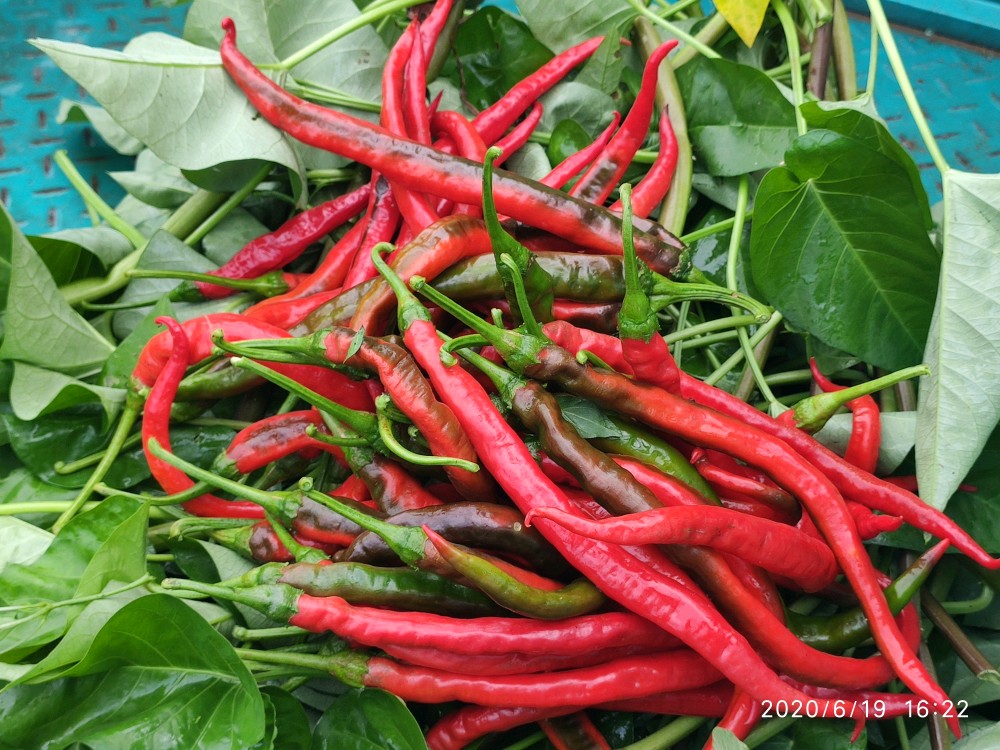 下午姑姑接那些神兽回来,本来说是摘点空心菜算了。看到辣椒这么好,没忍住,又摘了点红辣椒
