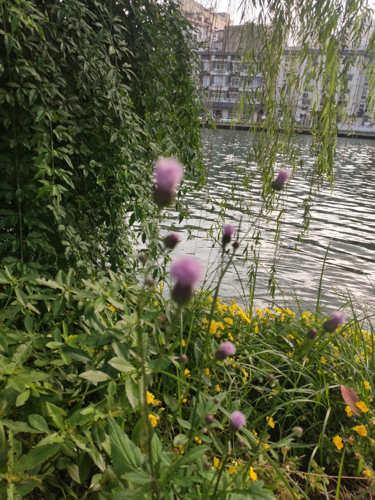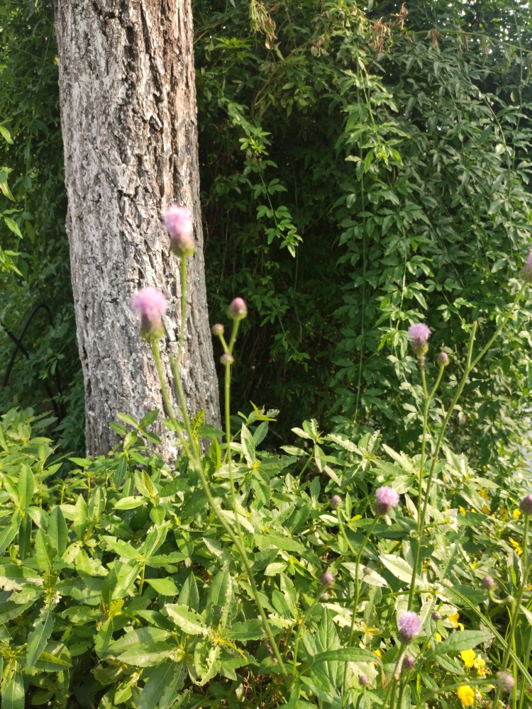 在公园里拍到的蓟,长在三色堇的旁边,一看就是野生的