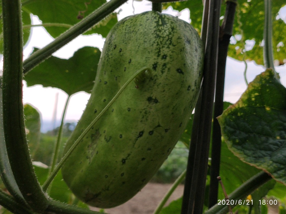 地里的黄瓜结这么多呢!大致数了一下,像这般大小的有9根