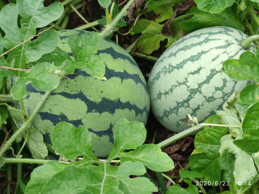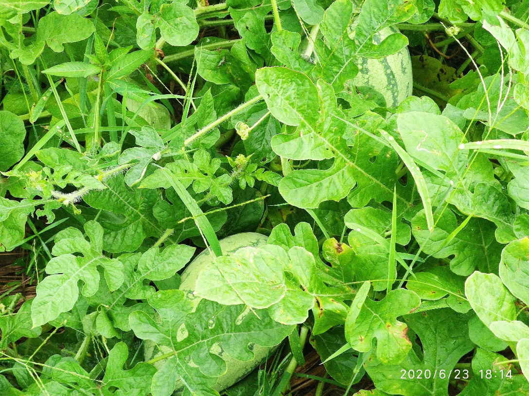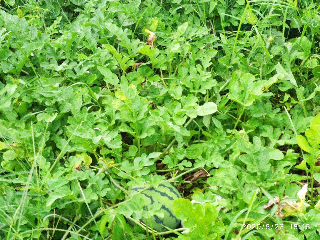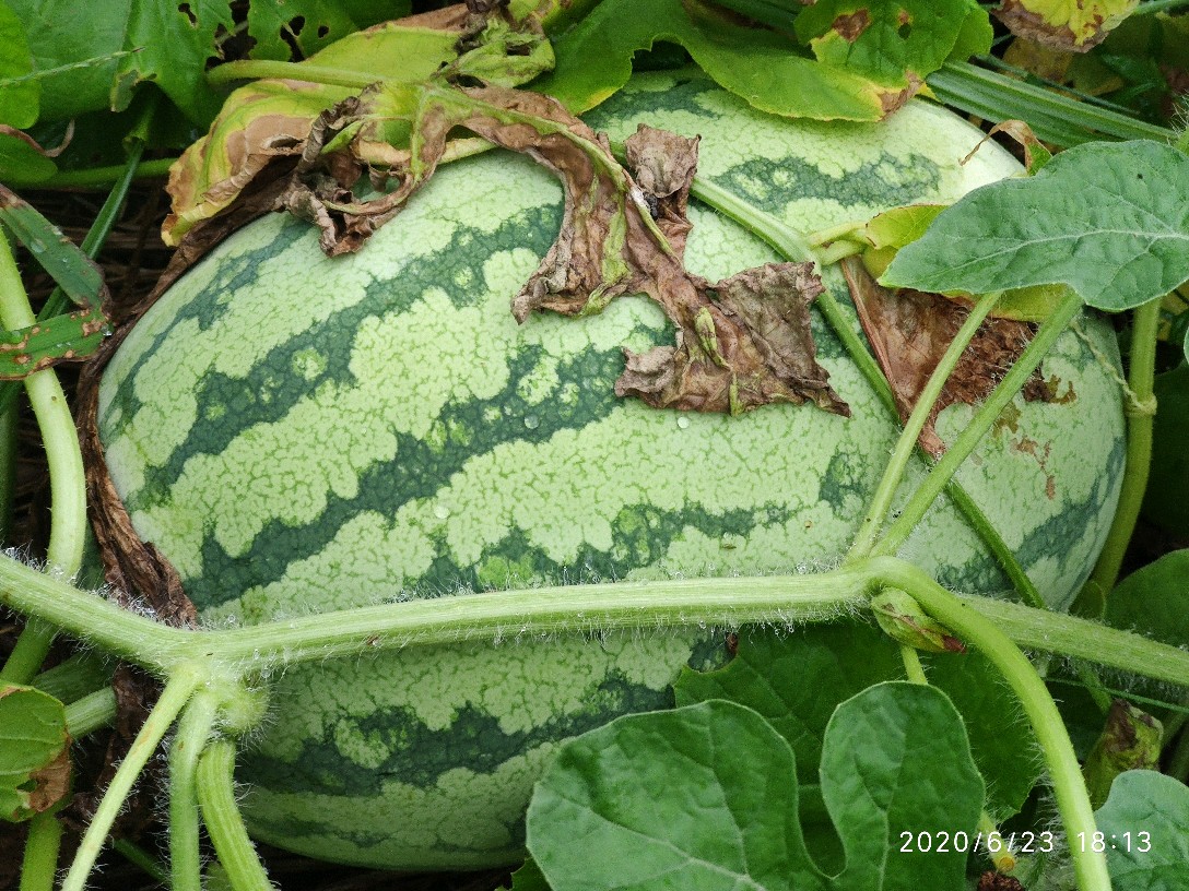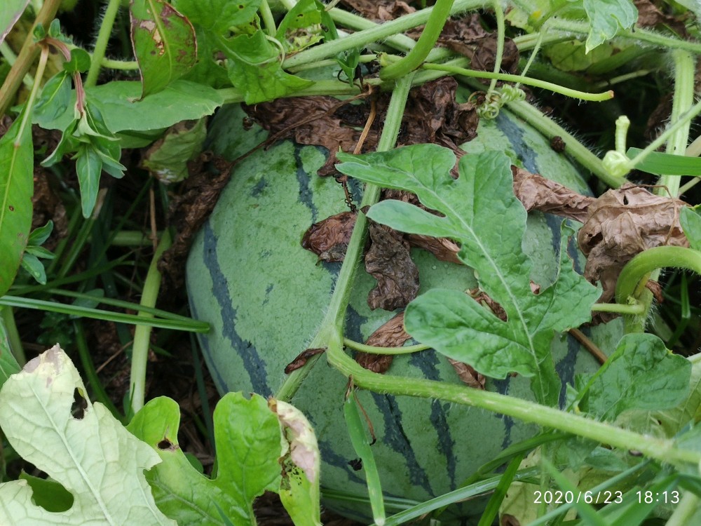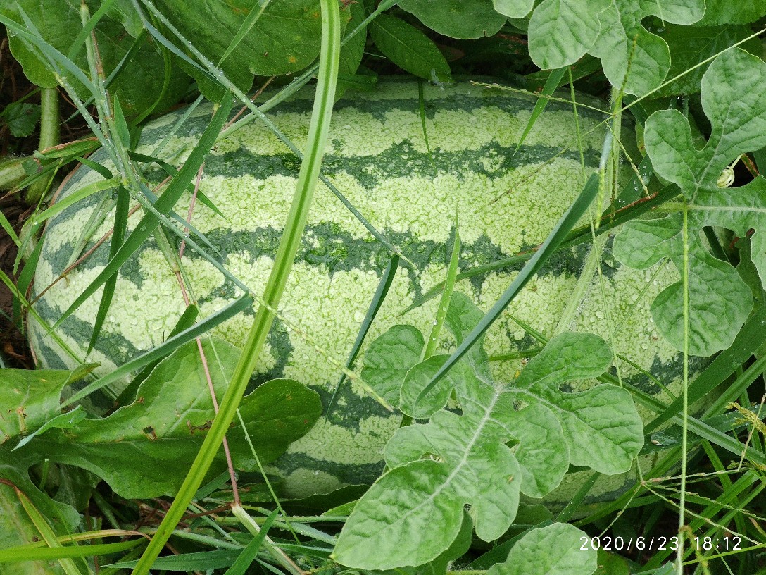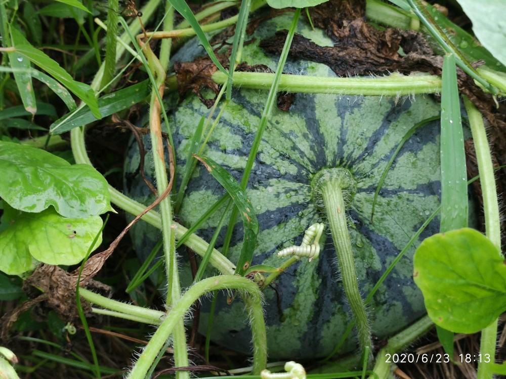 两个瓜是给小姨带回去的,现在地里就剩一枚大瓜了,还是就这几天长起来的,生的很。