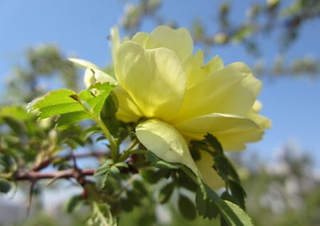 黄刺玫多在春季进行扦插繁殖。春季温度低,多采用嫩枝扦插,在6、7月份时候选择当年生半木质化枝条进行扦插。选择当年生的健壮木质化枝条,剪取10-15cm长留作插蕙,留2-3枚叶片,插入沙床。黄刺玫扦插后要保持土壤的湿润,一般40到50 天左右便可以生根。在第二年的春天再进行移栽。