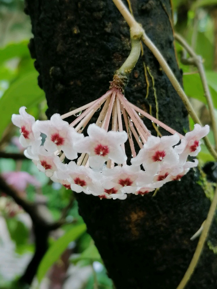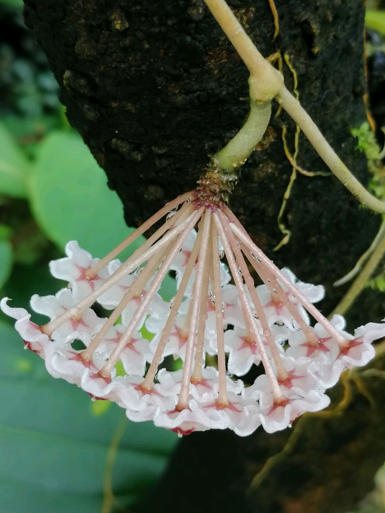 一般人種的毬蘭學名Hoya carnosa,是厚葉開花植物,而且有攀爬性,最適合吊盆種植。花開時一大團粉色小花組成一個圓球,而且非常香,