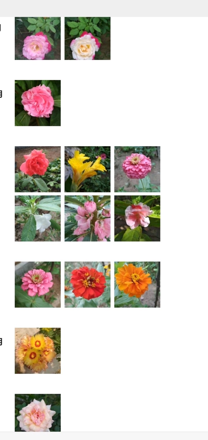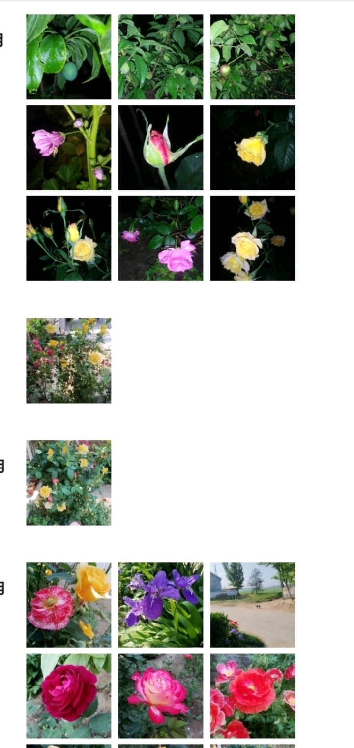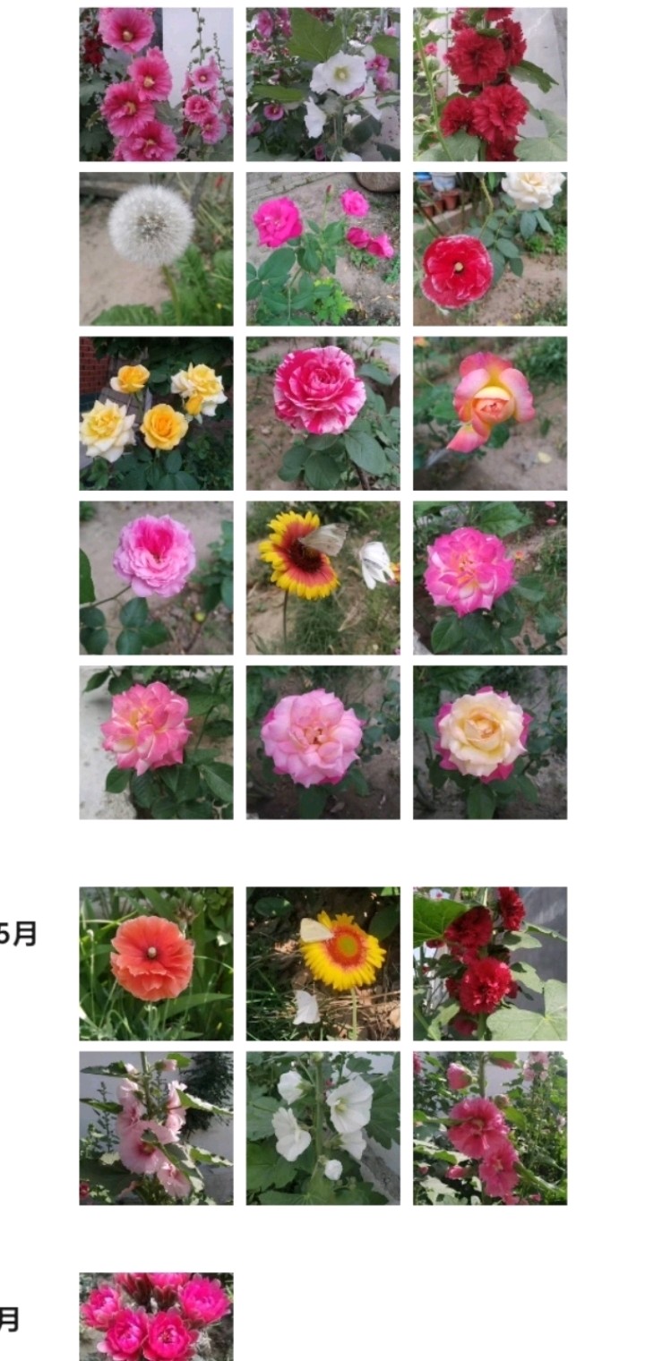 花园里种着各色月季、玫瑰,芙蓉葵,虞美人,这些都是地栽,到秋天还有各色菊花,花盆里种着各色太阳花、仙人球,仙人球也开花,也很漂亮!花园的一角,种着一畦韭菜,秋天的时候,会开白色的花朵,也别有一番风趣。