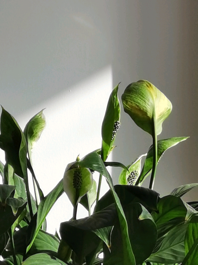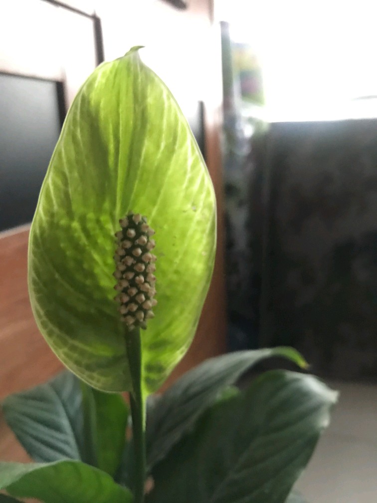 我养了一盆白掌,养了好几年了。但是 ,这一次开花,几天后它变成绿色的了,吓我一跳。