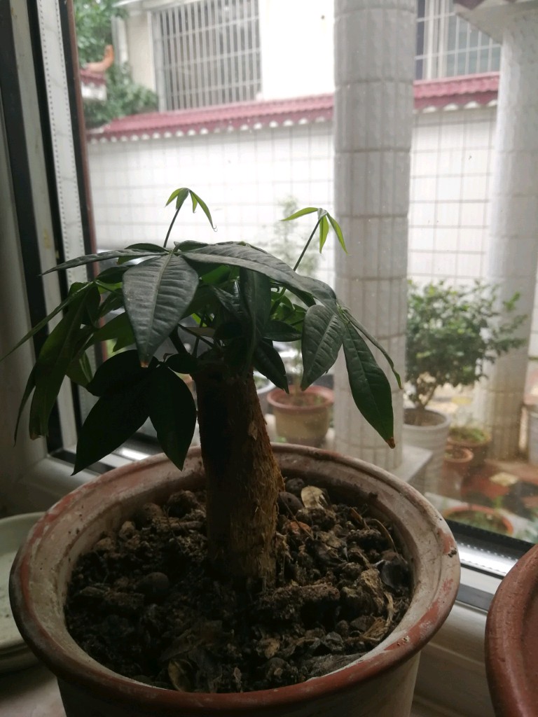 淘米水浇花非常营养,发财树长出尖尖嫩芽,徒长却也蛮有趣的,让它长几天再剪吧