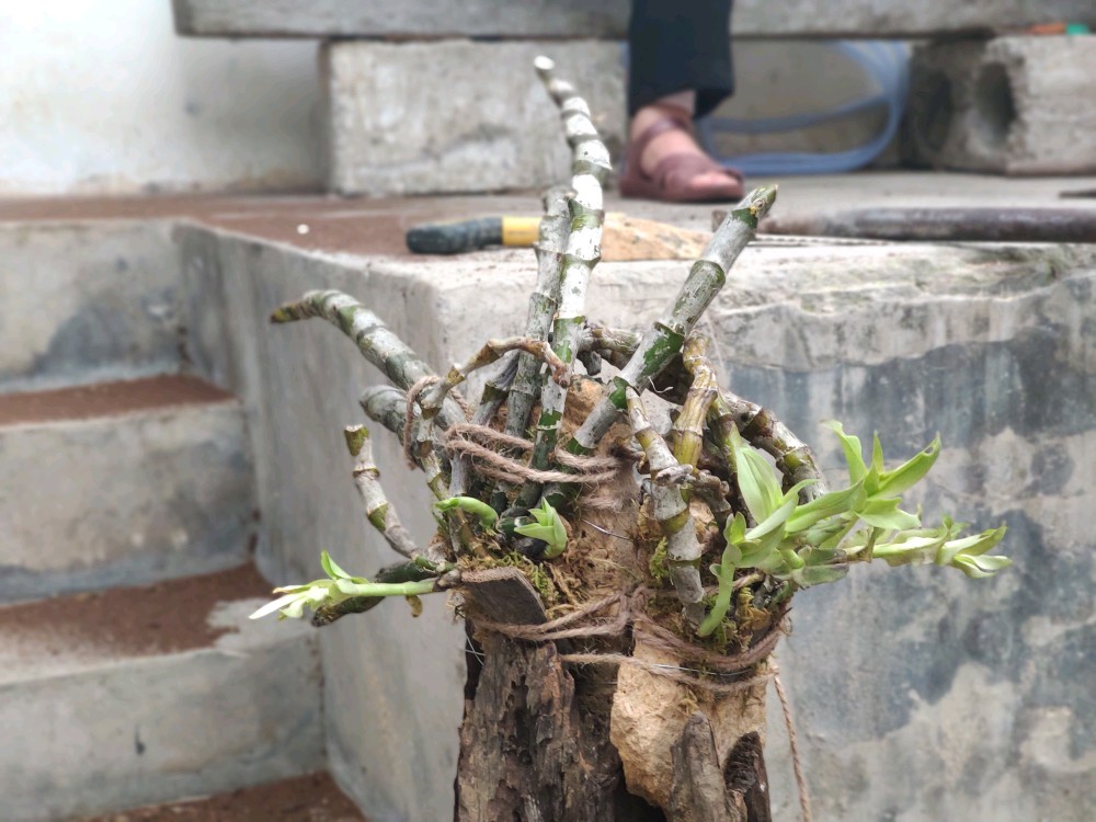 住在我外婆家西面的奎叔,荣休后开始倒腾花草,在门口的番荔枝树上种了好多石斛。