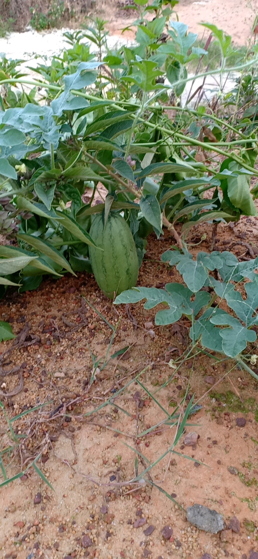 把一些西瓜籽种下后,浇了几次水再没理过,有点野生的感觉,没想到能结果,没想没想到。