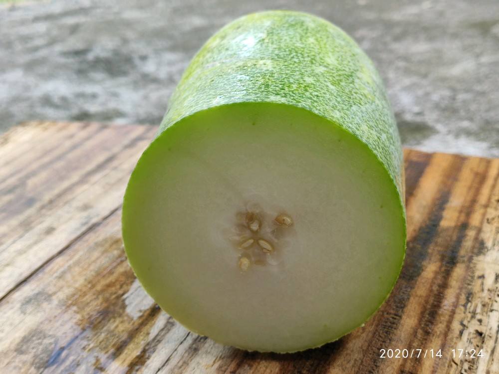 这样的冬瓜第一次见,也是第一次吃。一开始还怕味道不好,特意尝了一下再来说话。