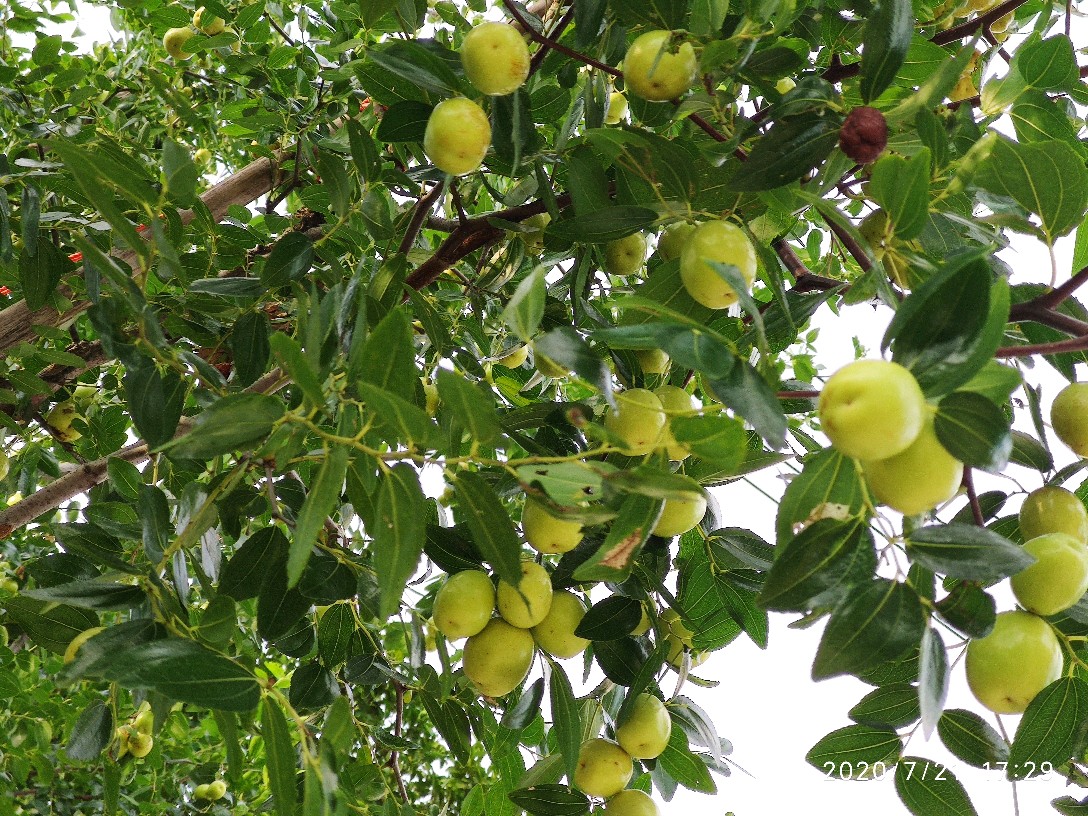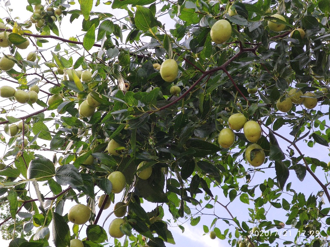 今年的枣子是结的最多的一年,结的多点自己也能多吃几个。现在还没咋熟便让人摘去了不少。