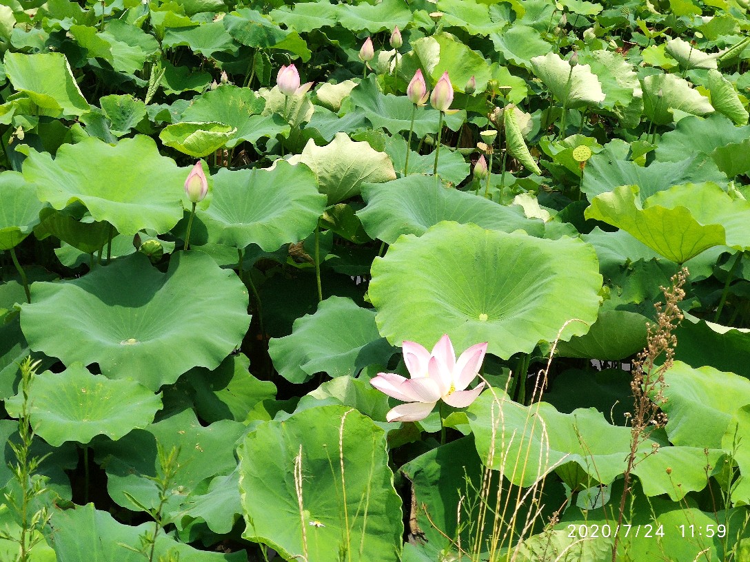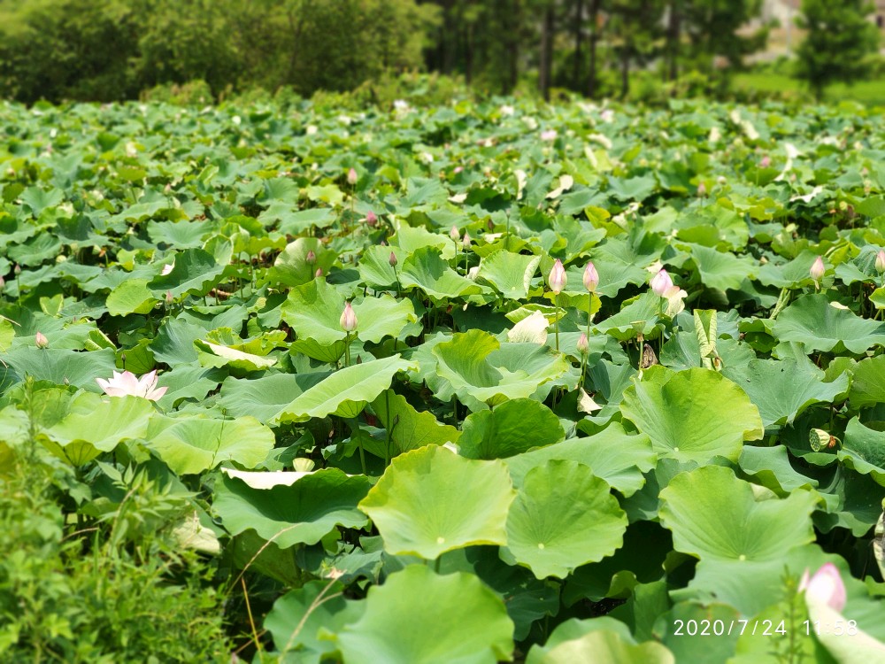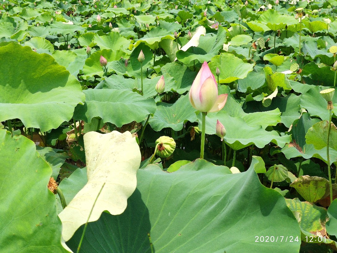 荷花也是成片成片的,有粉色的荷花也有饱满的莲蓬。