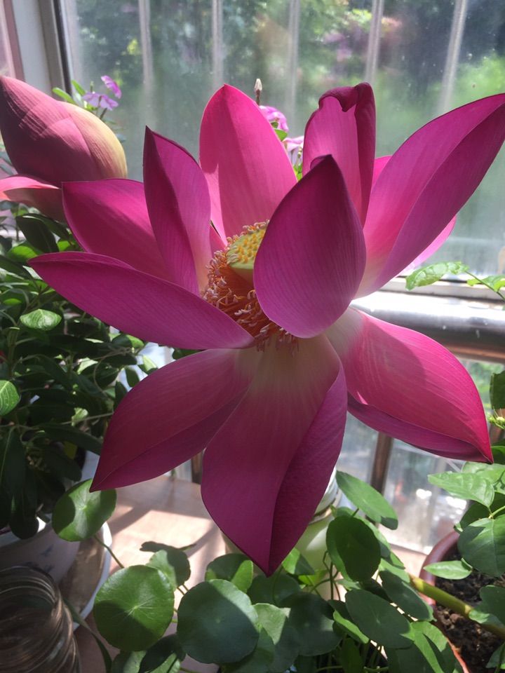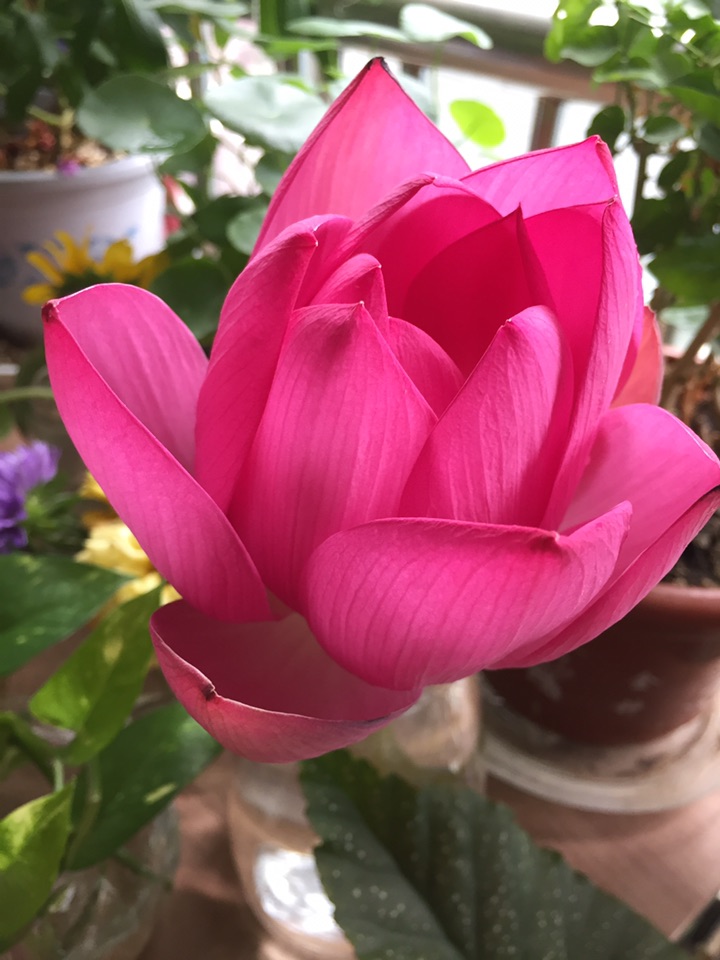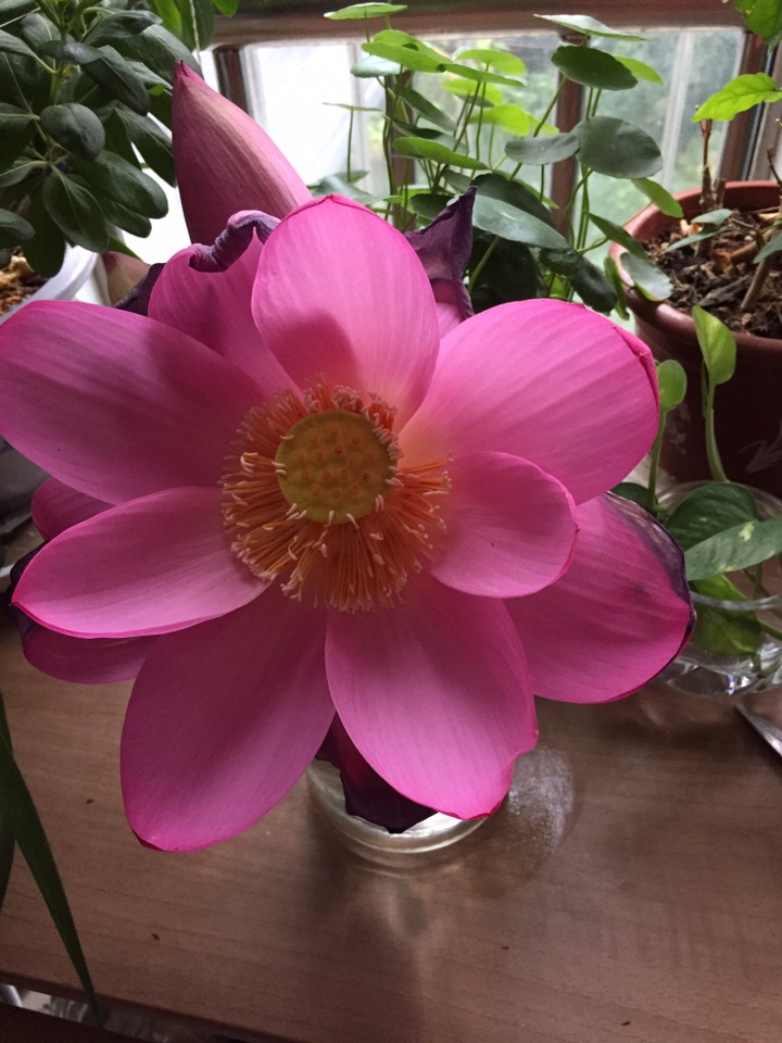 虽然今年夏天马上结束了,早晚已有秋的气息,但是我还是要分享一下荷花的美。我们在公园欣赏荷花,只可远观不可亵玩。自从发现市场上有卖荷花骨朵的,我就没少花钱,有时候泡开了,也有的干瘪不成功的。时间很短,两三天就落瓣了。可是我贴近它,感受它的气息,仔细看它小小的莲蓬和密实的花蕊。真的喜欢啊!