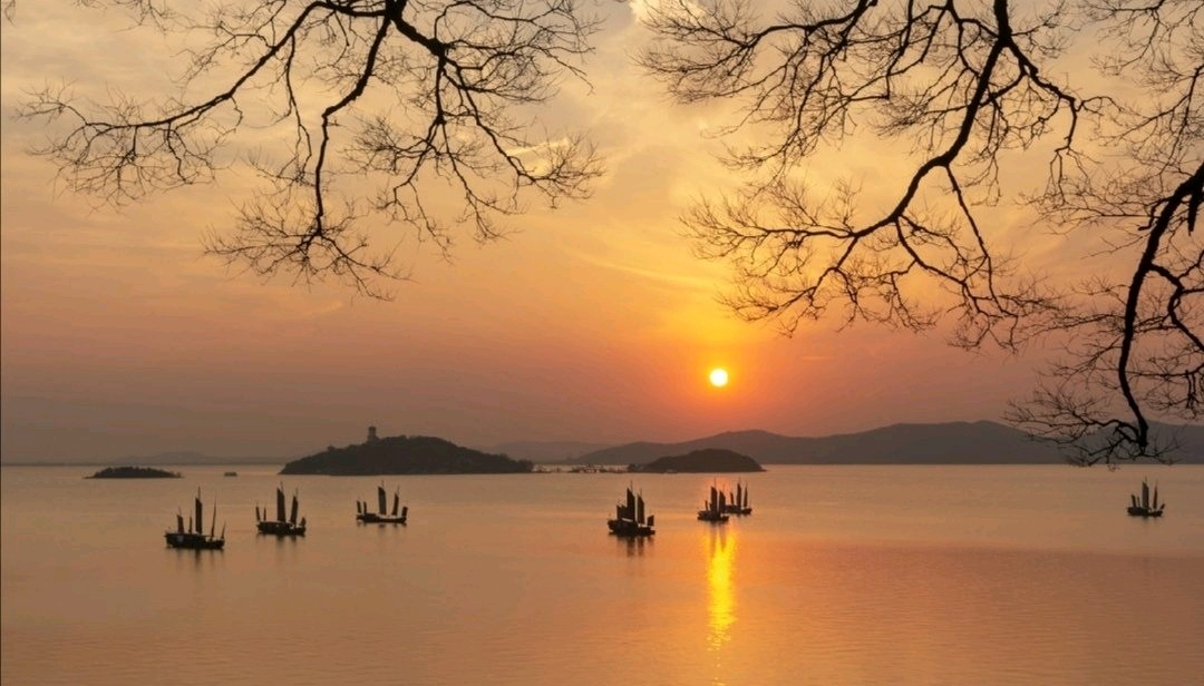 日暮江风静,霞流水中吟。