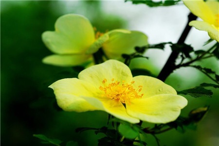 蔷薇叶蜂在五、六月间发生,直七、八月均为害。幼虫食害叶片,成虫产卵在幼枝上,刺破幼枝,使小枝厅裂。黄刺玫有蔷薇叶蜂危害的时候,可喷射223乳剂加水250—400倍杀死幼虫,也可用人工剪掉有虫卵的树枝集中烧毁。