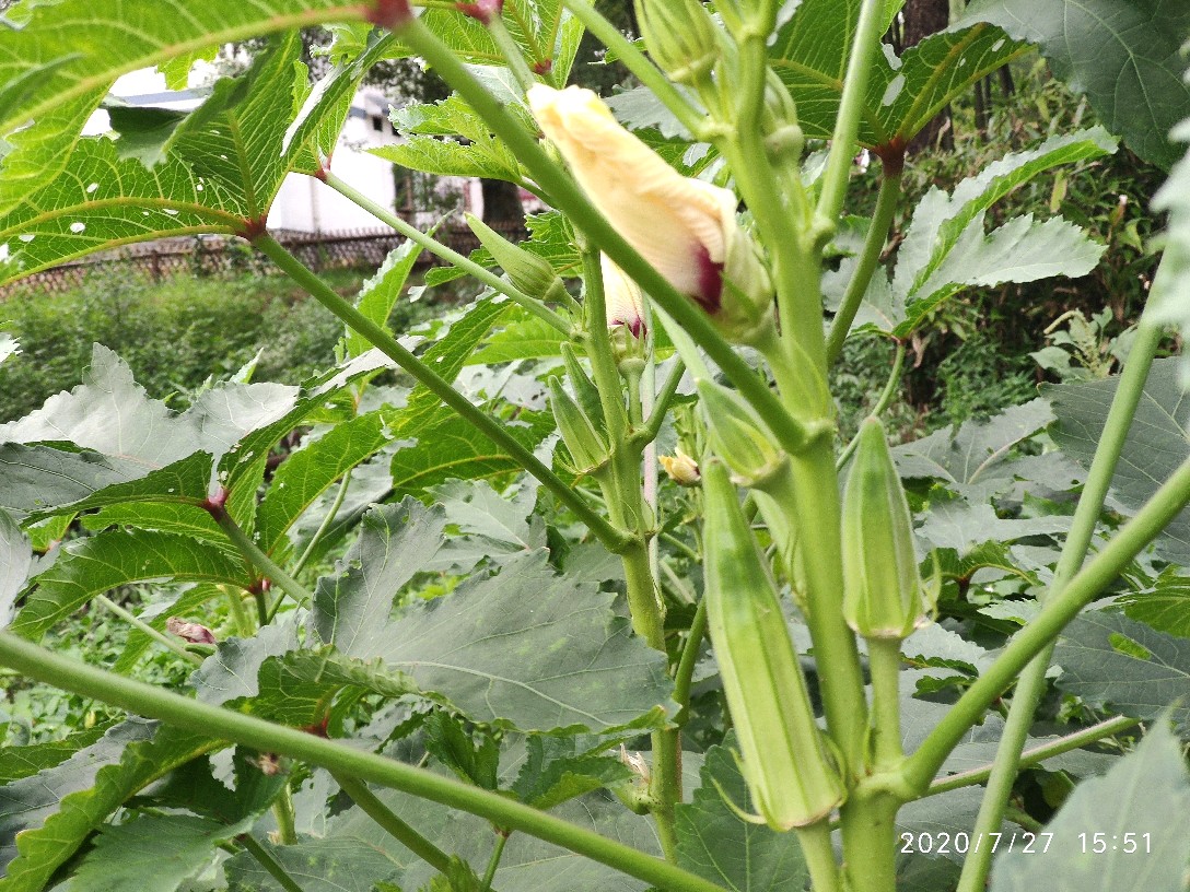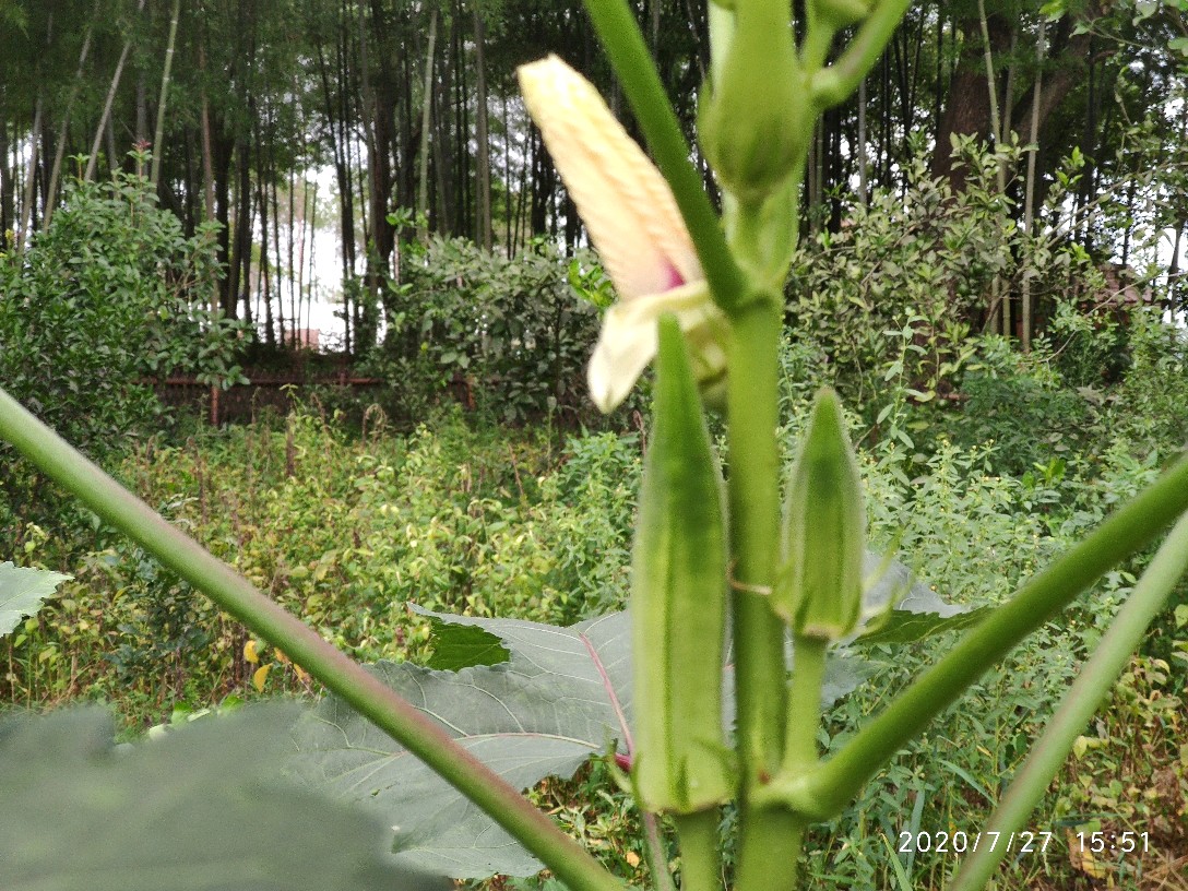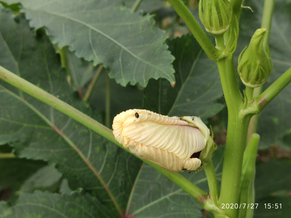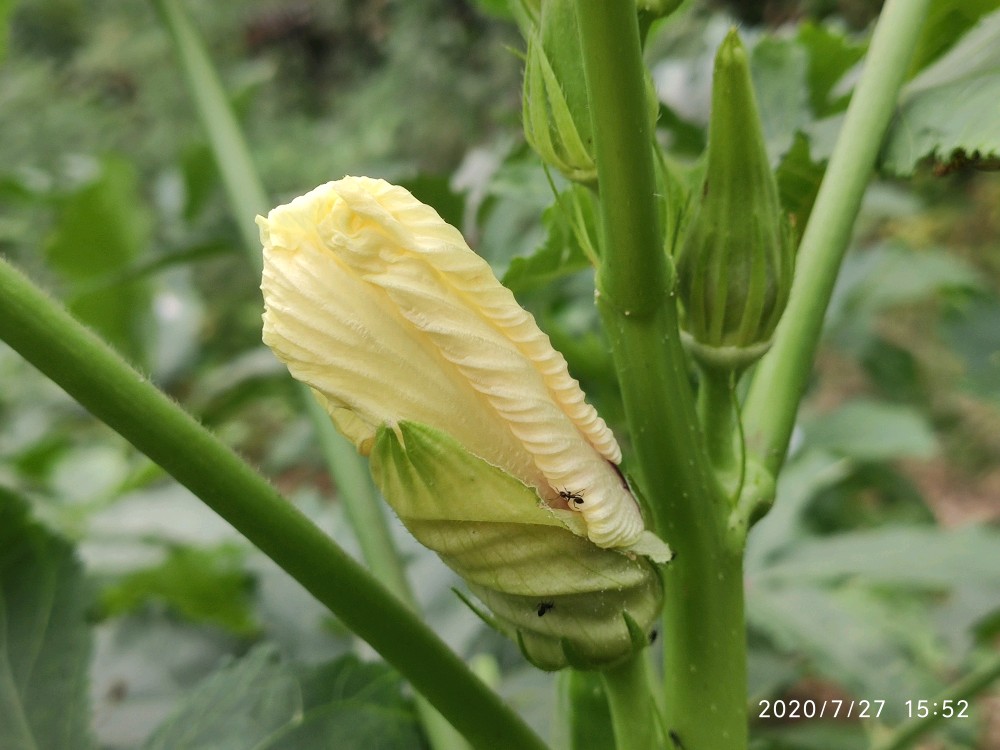 这秋葵跟上次见到的有所不同,植株高大,花儿也硕大无比