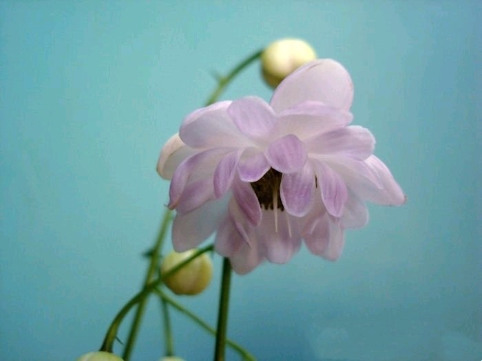 莲花升麻是多年生草本,可达75cm高,小叶卵形,边缘有齿。花开在晚夏,淡藕荷色,每朵花长2cm左右。花碗型,中间还有一圈花环,且花向下垂。虽然不是一种小型草本,但植物整体的感觉极为纤细精致。