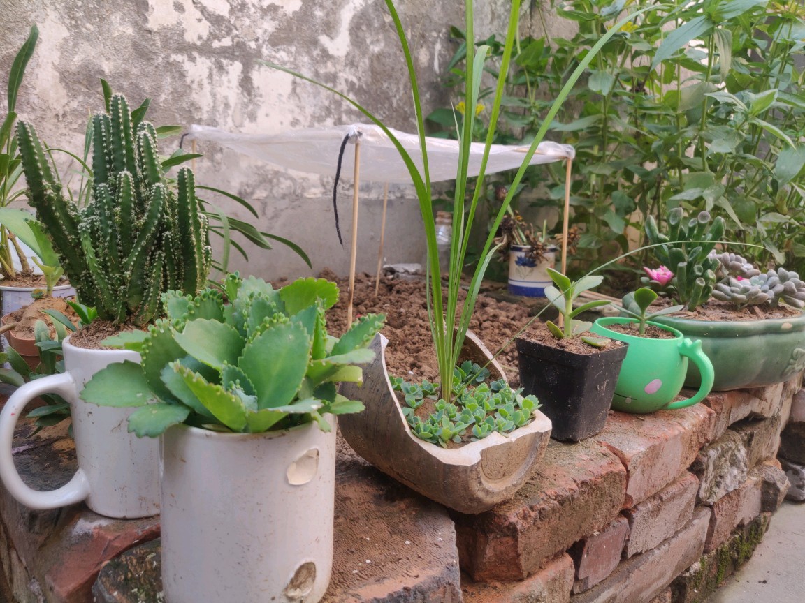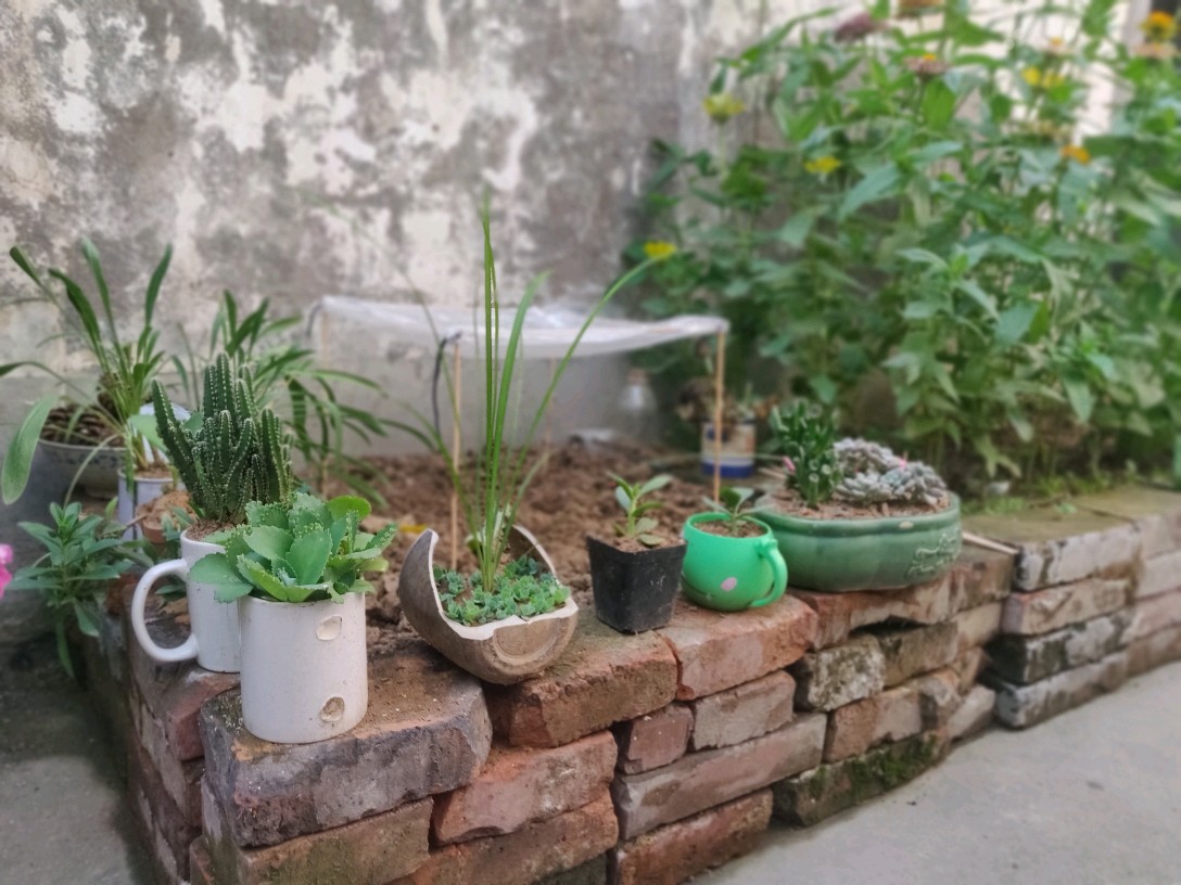 幸亏破瓶瓶罐罐里的小东西长势还不错,要不然真成了荒废的野园子了😁。