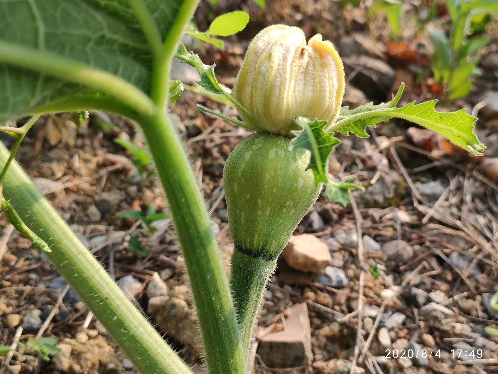 四棵南瓜被小鸡霍霍了俩。