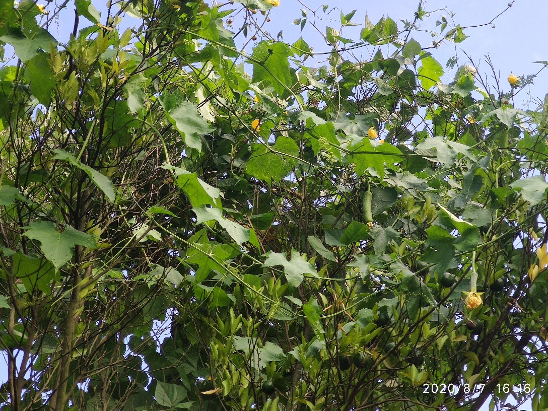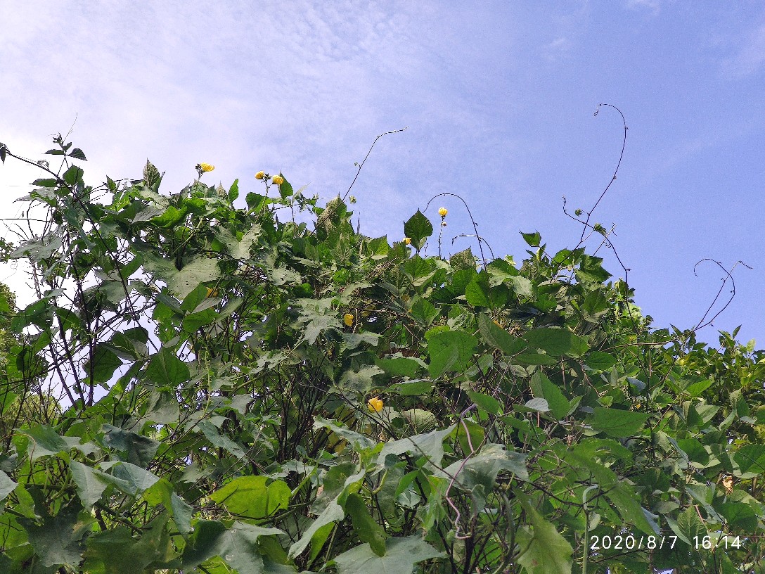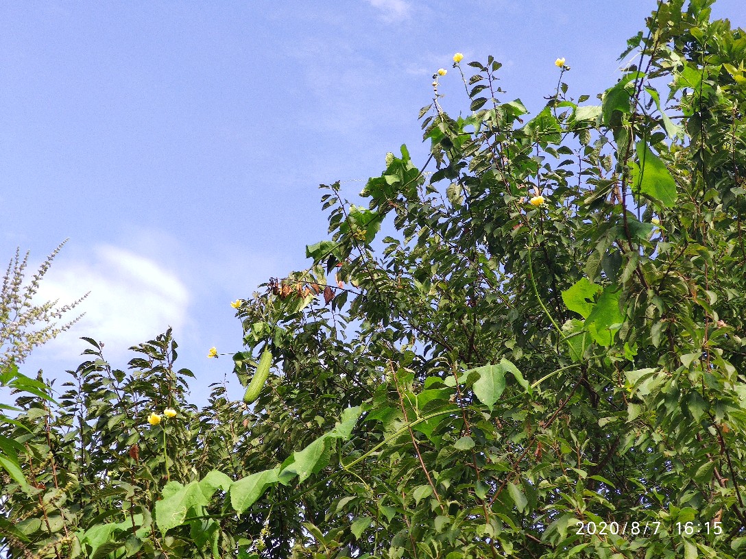 同时期种的丝瓜,别人家的早在一个多月前就开始吃了,而我的这一棵始终只开花不结果。