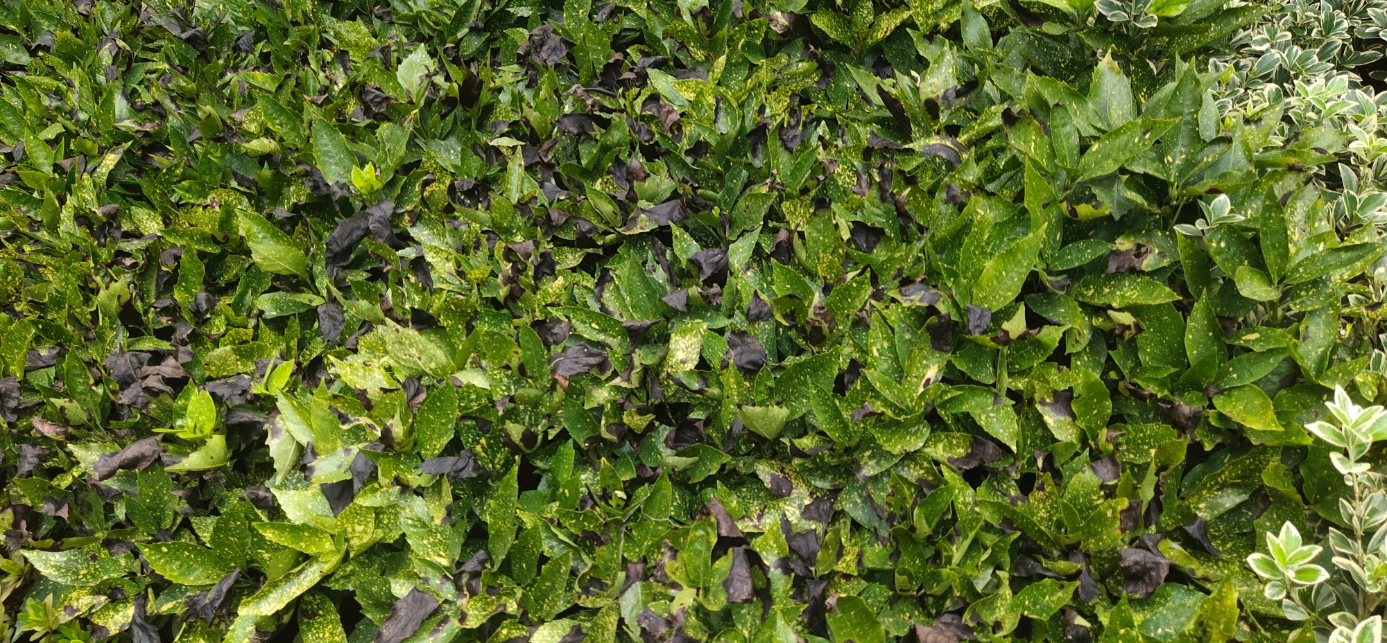 图中的的变叶木受强阳光的暴晒,叶子已