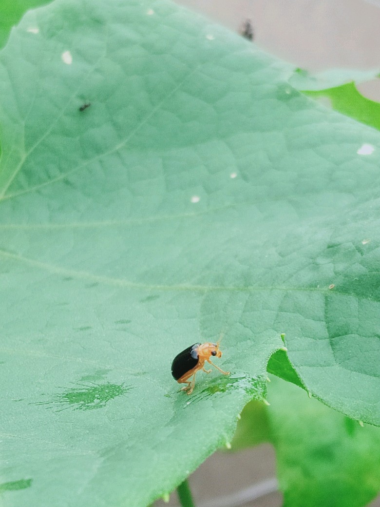这是一只可能是黄足黄守瓜,因为这是我自己查出来的,我不太专业哈,南瓜花里有很多这种小虫