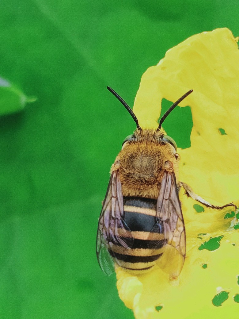 下面的蜂挺特别,挺圆的,和平常的蜜蜂不一样,不认识,我对昆虫方面真一窍不通😳