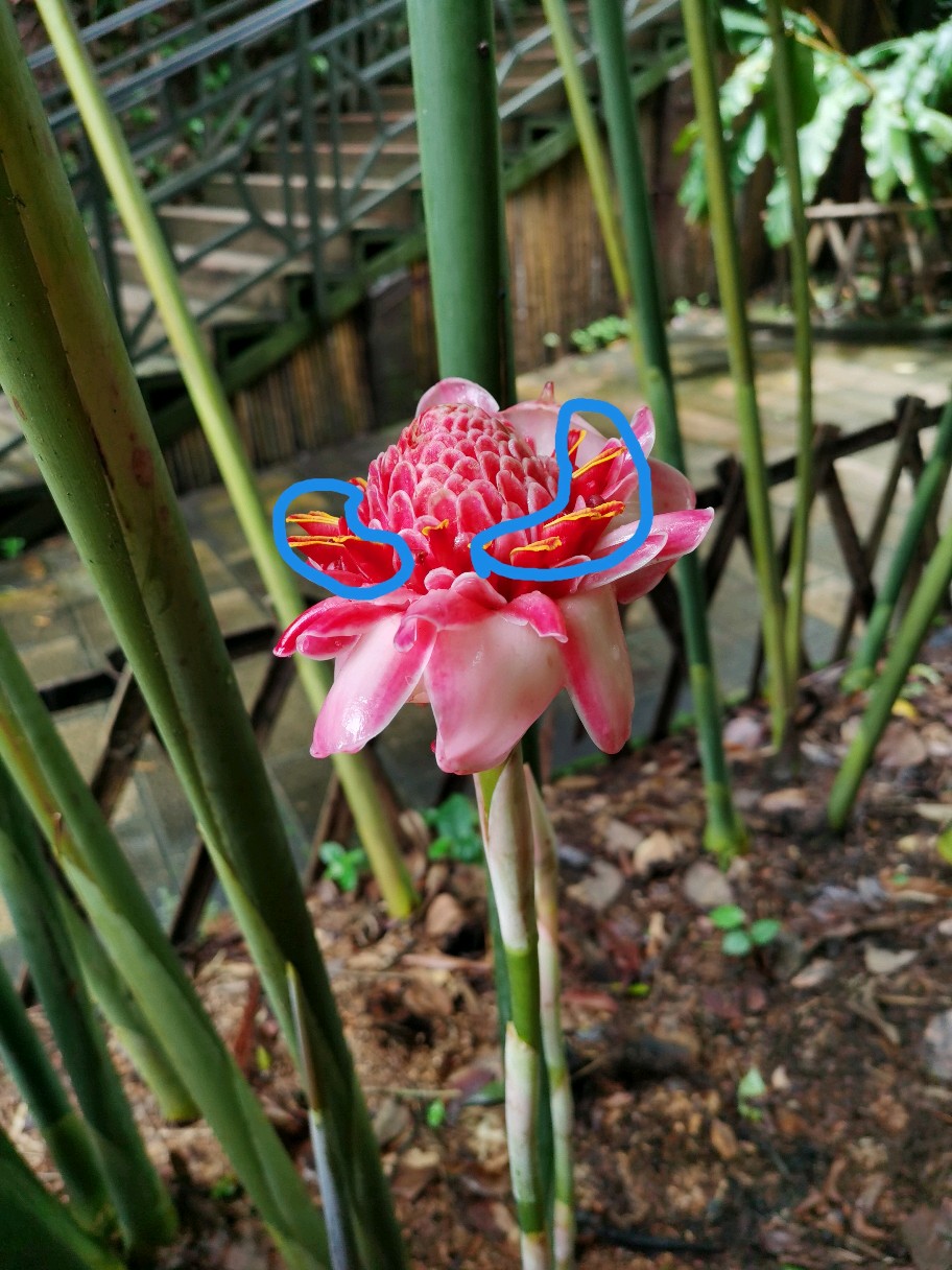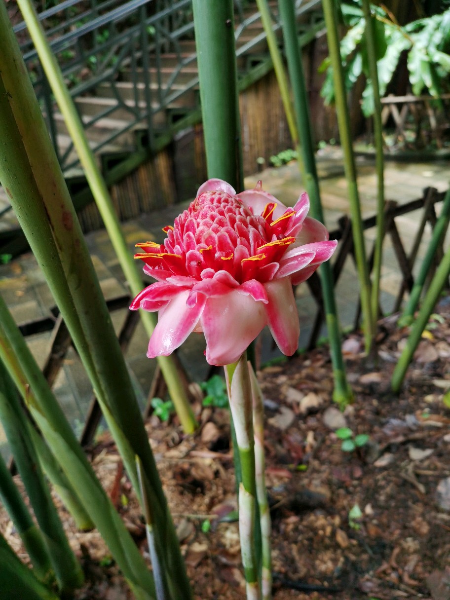 看起来是不是像朵玫瑰?感觉是瓷的呢。实际上瓷玫瑰和玫瑰一点关系都没有,瓷玫瑰是姜科的植物。我们看到的这朵大玫瑰并不是她的花哦,是她的花序
